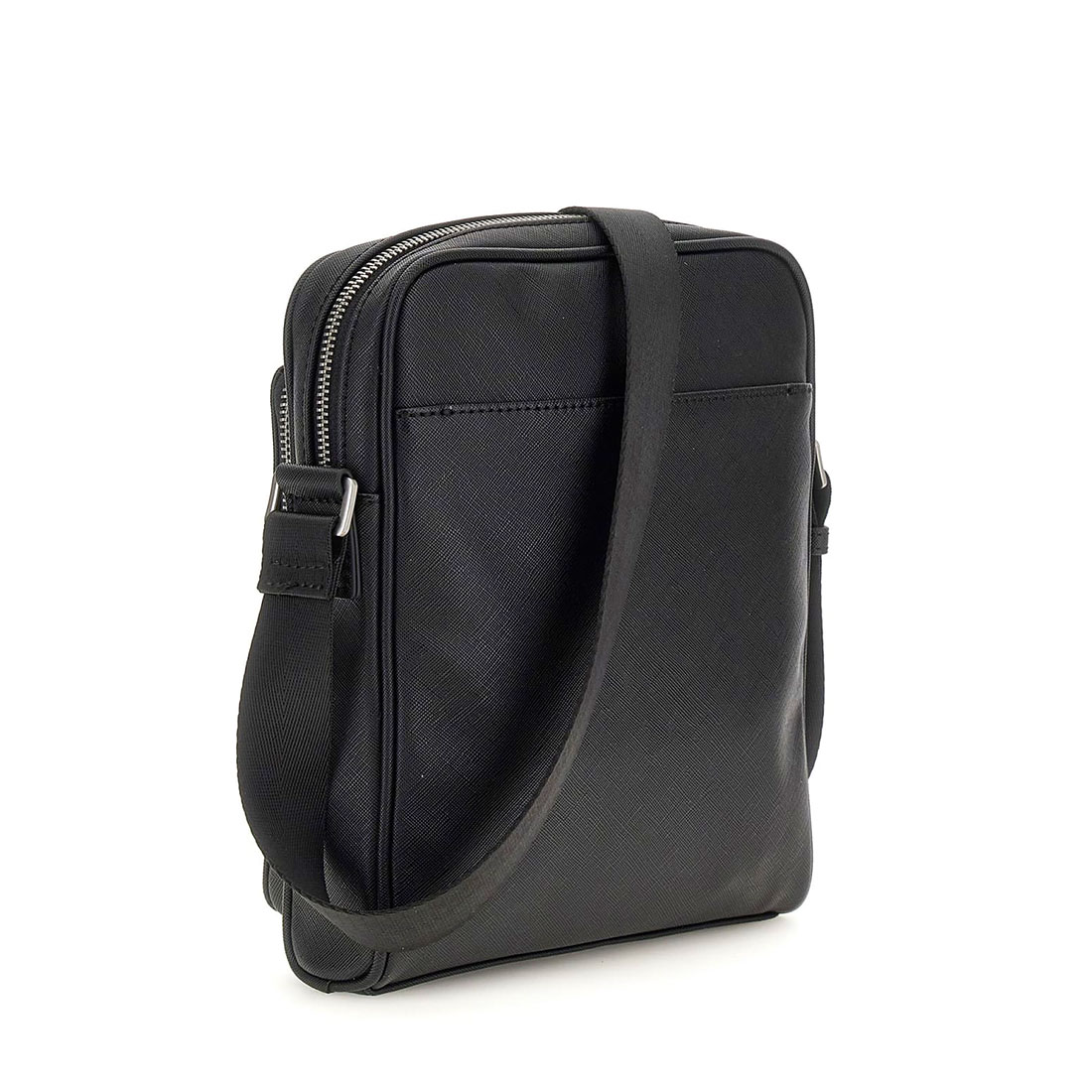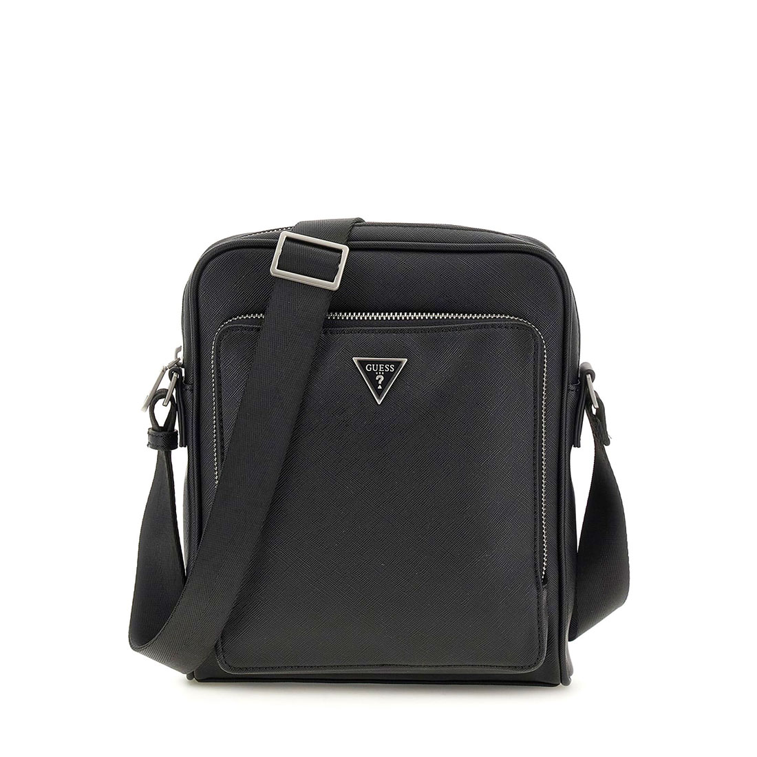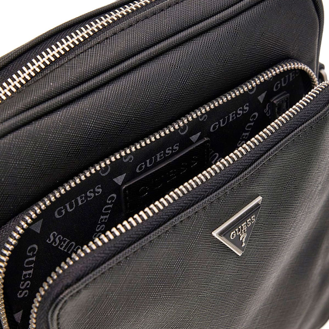 Ανδρική τσάντα Guess. Οργανώστε τέλεια όλα τα πραγματά σας μέσα σε αυτή την ευρύχωρη και πρακτική ανδρική χιαστί τσάντα από την Guess. Διαθέσιμη σε μαύρο χρώμα. Διαθέτει λουράκι το οποίο προσαρμόζεται στο σημείο που σας εξυπηρετεί ώστε να την φορέσετε χιαστί ή στον ώμο. Κλείσιμο με φερμουάρ στο πάνω μέρος και το τσεπάκι στο μπροστά μέρος. Διαστάσεις 19Χ32Χ2.