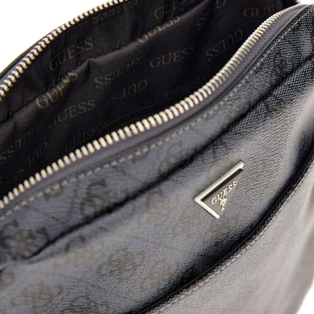 Ανδρική τσάντα Guess. Από τα επαγγελματικά ταξίδια μέχρι τα ανέμελα σαββατοκύριακα,αυτή η ανδρική χιαστί τσάντα Guess θα σας βοηθήσει να έχετε μαζί σας όλα τα απαραίτητα. Διαθέσιμη σε μαύρο χρώμα. Διαθέτει λουράκι το οποίο προσαρμόζεται στο σημείο που σας εξυπηρετεί. Κλείσιμο με φερμουάρ στο πάνω μέρος και με μαγνητικό κούμπωμα στο μπροστά και στο πίσω μέρος. Επαναλαμβανόμενο μοτίβο και μεταλλικό τρίγωνο στο μπρόστα μέρος με το λογότυπο.