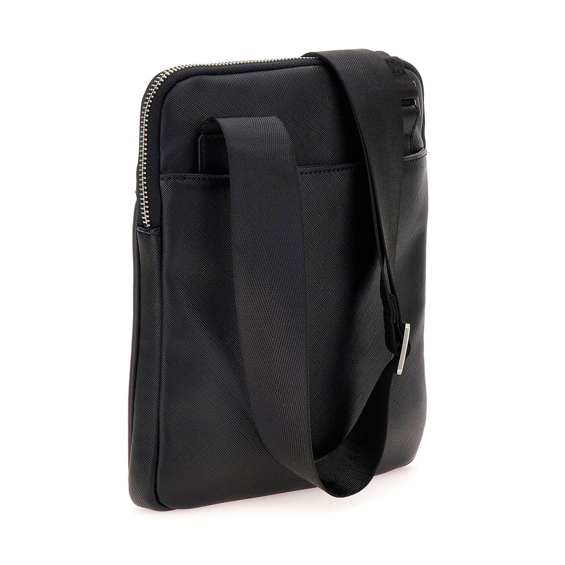 Ανδρική τσάντα Guess. Ανδρικό χιαστί τσαντάκι μονόχρωμο από την Guess. Διαθέσιμο σε μαύρο χρώμα. Λιτός σχεδιασμός και ρυθμιζόμενο λουράκι που επιτρέπει να ρυθμίσετε το ύψος στο επιθυμητό σημείο. Κλείσιμο με φερμουάρ στο πάνω μέρος και μεταλλικό τρίγωνο με το λογότυπο μπροστά. Συνθετικό δέρμα εξαιρετικής ποιότητας. 21Χ24Χ4.