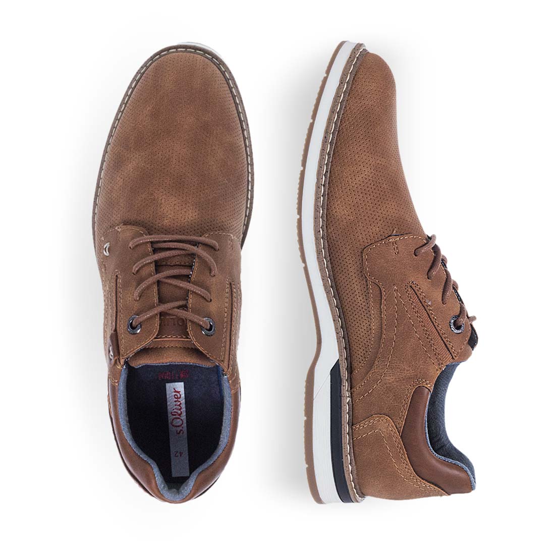 Ανδρικά αμπιγιέ υποδήματα από την εταιρεία S.Οliver με κορδόνια για τέλεια εφαρμογή. Έχουν σχεδιαστεί από συνθετικό δέρμα άριστης ποιότητας και εξωτερικά έχουν suede υφή. Διαθέσιμα σε κονιάκ χρώμα, μαλακός πάτος και σταθερή σόλα.