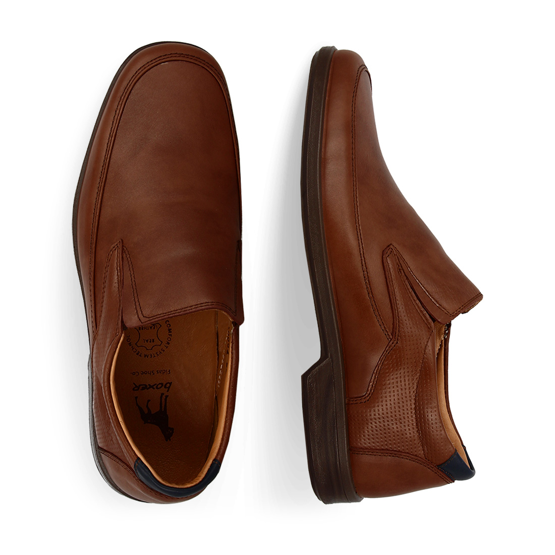 Ανδρικά δερμάτινα loafer Boxer. Ακόμα μια άνετη επιλογή για το καθημερινό σου στιλ αυτά τα άνετα ανδρικά δερμάτινα loafer από την νέα συλλογή της Boxer. Κατασκευάζονται στην Ελλάδα,διαχρονικό σχέδιο σε μοντέρνο ταμπά χρώμα. Ελαστικά πλαινά για εύκολη εφαρμογή σε κάθε τύπο ποδιού. Αναπαυτικό δερμάτινο πέλμα και ανθεκτική σόλα που δεν γλιστράει με μικρό τακούνι. Ένας τέλειος συνδυασμός άνεσης και στιλ αυτά τα ανδρικά δερμάτινα loafer από την Boxer.