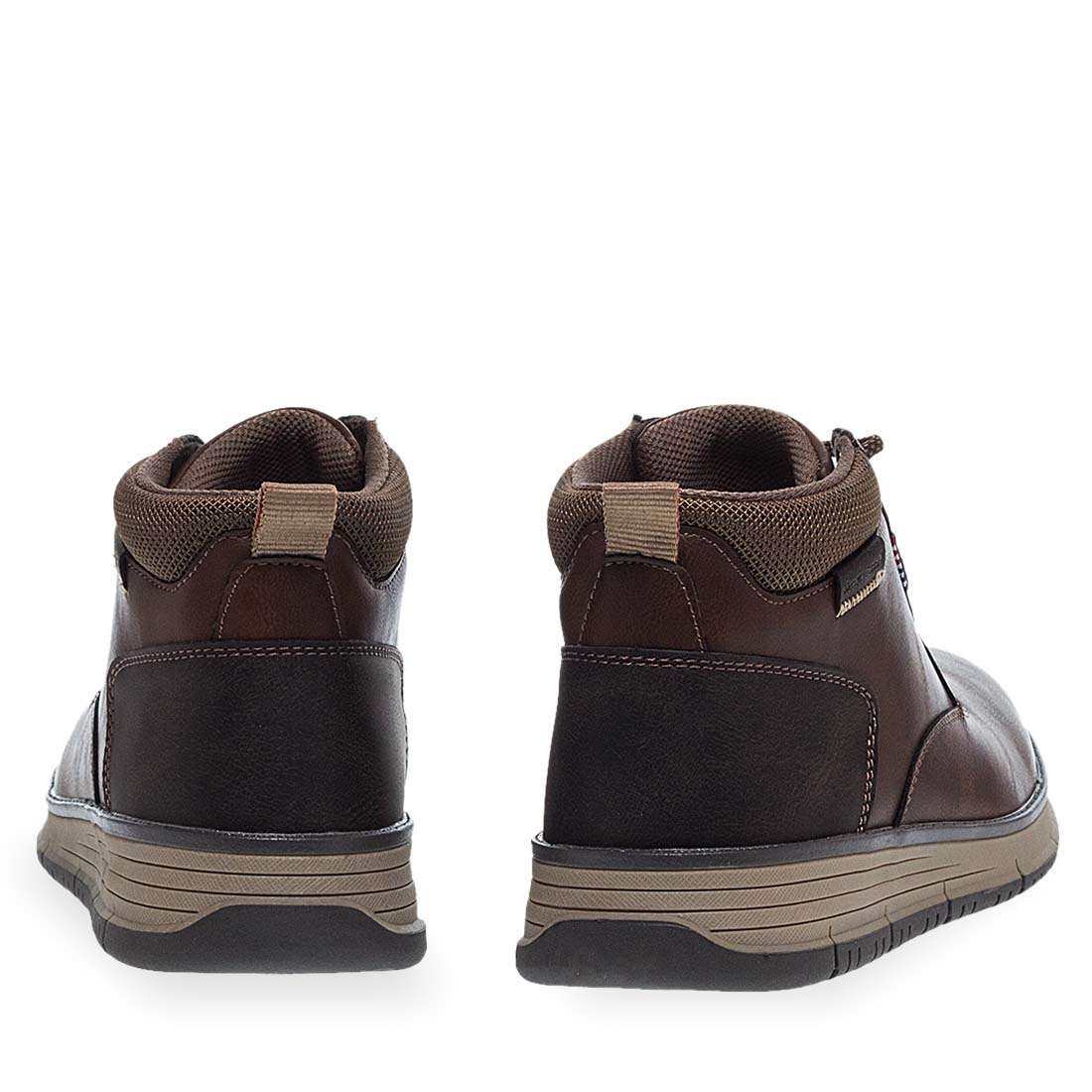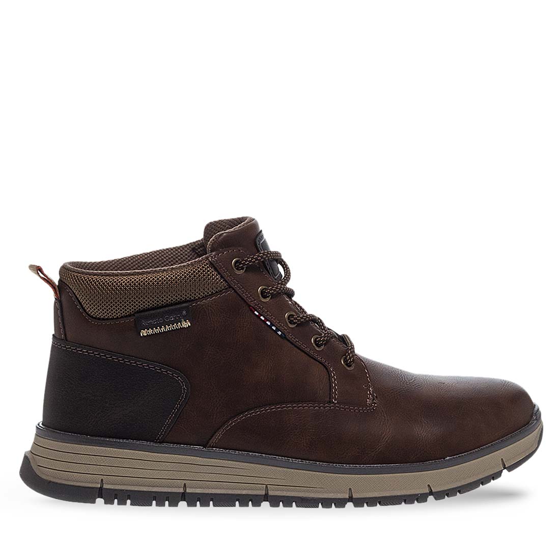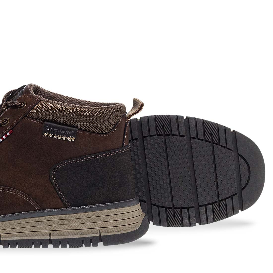 Μοντέρνα ανδρικά μποτάκια Renato Garini, διαθέσιμα σε καφέ χρώμα. Δένουν με κορδόνια για εύκολη εφαρμογή. Μαλακό πέλμα και σταθερή, λαστιχένια σόλα. Διαθέτουν εξαιρετικό συνδυασμό υλικών και χρωμάτων. Ανδρικά μποτάκια που διαθέτουν τα χαρακτηριστικά που χρειάζεται ένα άνετο σχέδιο για χρήση καθ’ όλη τη διάρκεια της ημέρας.