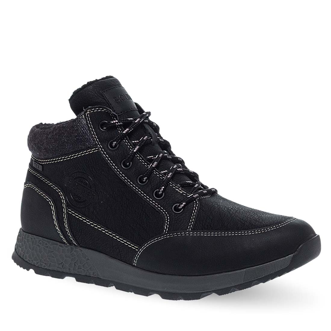 Ανδρικά μαύρα μποτάκια S.Oliver από συνθετικό δέρμα υψηλής ποιότητας. Με ζεστή επένδυση στο εσωτερικός μέρος και εξωτερικές ραφές. Κλείσιμο με κορδόνια αλλά και φερμουάρ. Μοντέρνα και άνετα ανδρικά μποτάκια γι'' αυτούς που θέλουν να συνδυάσουν άνεση και στιλ.