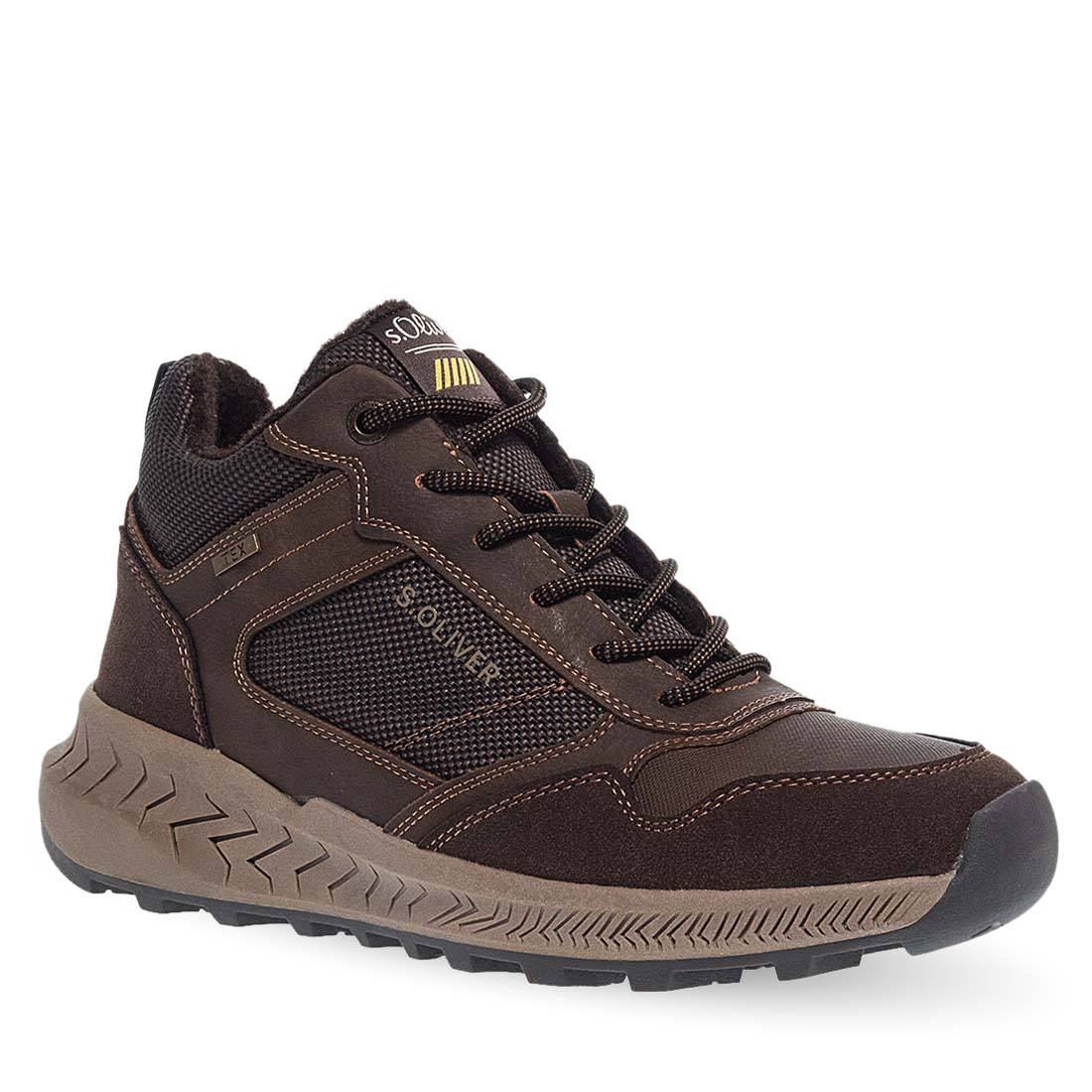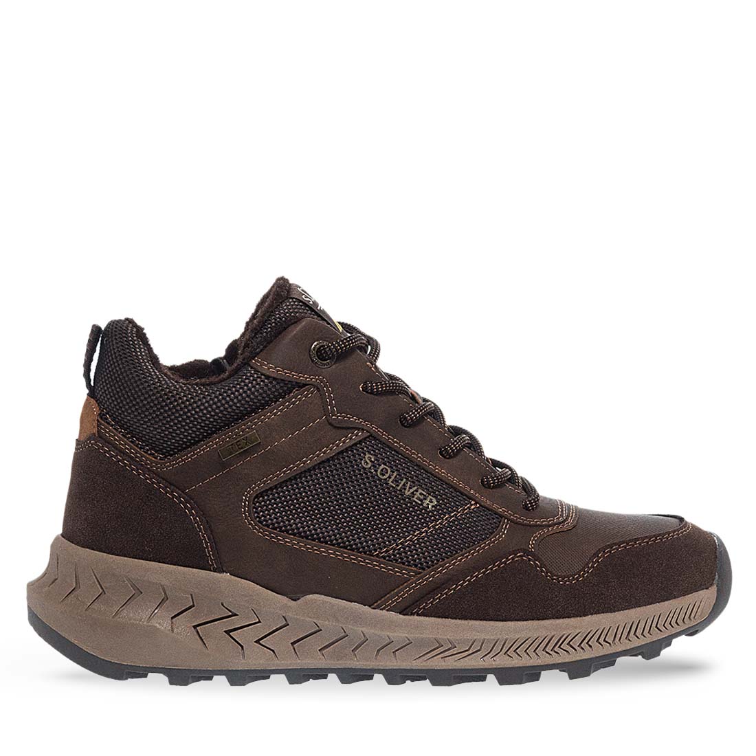 Ανδρικά ορειβατικά μποτάκια της εταιρείας S.Oliver. Έχουν σχεδιαστεί από συνθετικό δέρμα. Με συνδυασμό υλικών και χρωμάτων και έντονες εξωτερικές ραφές. Μαλακό πέλμα και σταθερή, λαστιχένια σόλα. Διαθέτουν εξαιρετικό συνδυασμό υλικών και χρωμάτων. Ανδρικά μποτάκια που διαθέτουν τα χαρακτηριστικά που χρειάζεται ένα άνετο σχέδιο για χρήση καθ’ όλη τη διάρκεια της ημέρας.