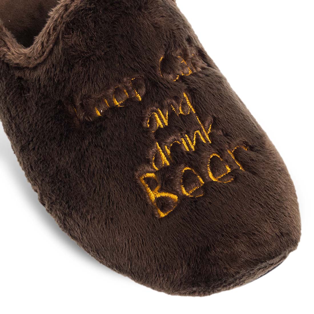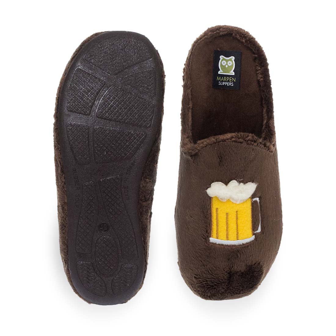 Ανδρικές χνουδωτές παντόφλες σπιτιού Marpen, διακοσμημένες με στάμπα από ποτήρι μπύρας. Διαθέτουν μαλακό, βελουτέ πάτο για άνεση και ζεστασιά όλο το χειμώνα μέσα στο σπίτι. Μια cozy επιλογή, ιδανική για καθημερινή χρήση.