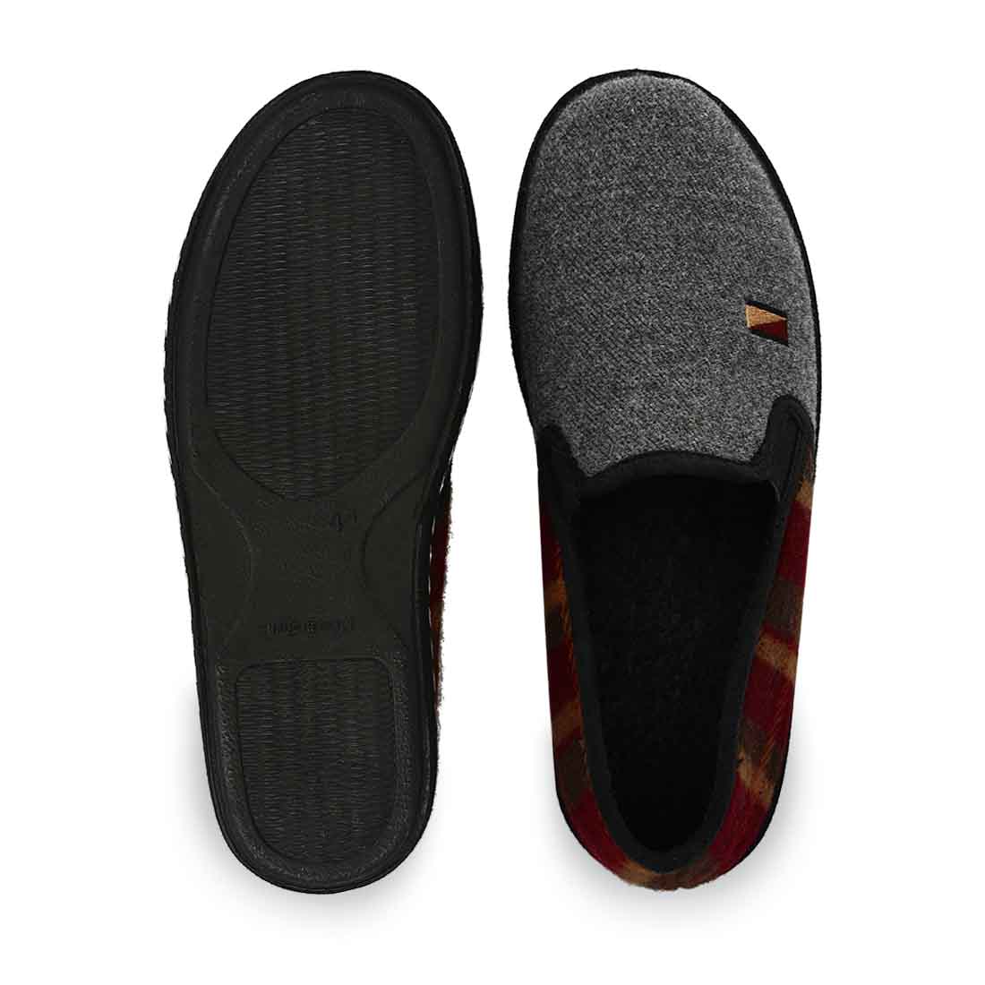 Κλειστές παντόφλες σπιτιού με καρό σχέδιο στο πίσω μέρος. Ζεστές και αναπαυτικές. Παντόφλες με εύκολη εφαρμογή από μαλακό ύφασμα. Σταθερές στο περπάτημα για άνεση σε κάθε βήμα.