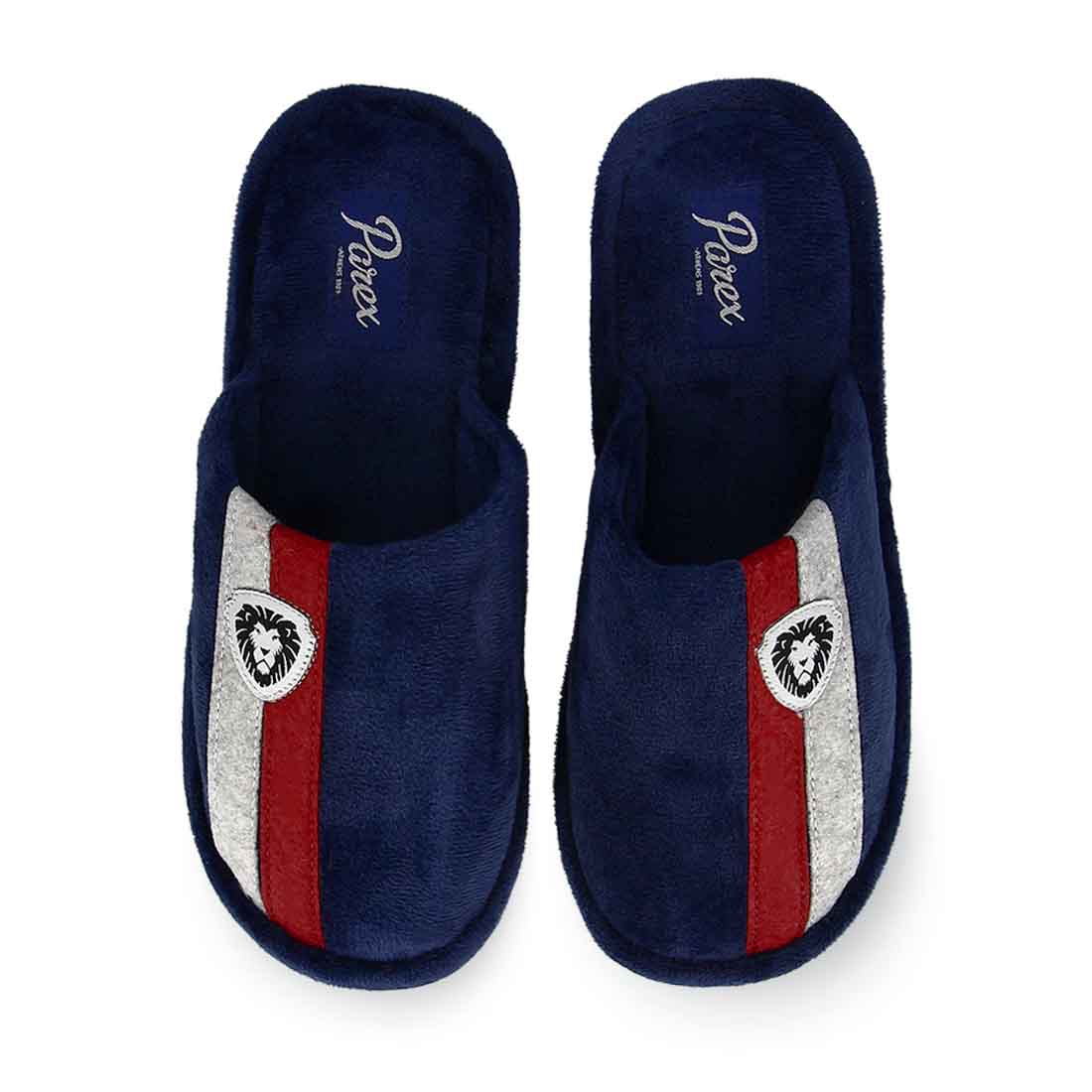 Bελούδινες παντόφλες σπιτιού Parex. Σχέδιο με ρίγες και διακριτική στάμπα λιονταριού. Με λαστιχένια, έυκαμτη σόλα.