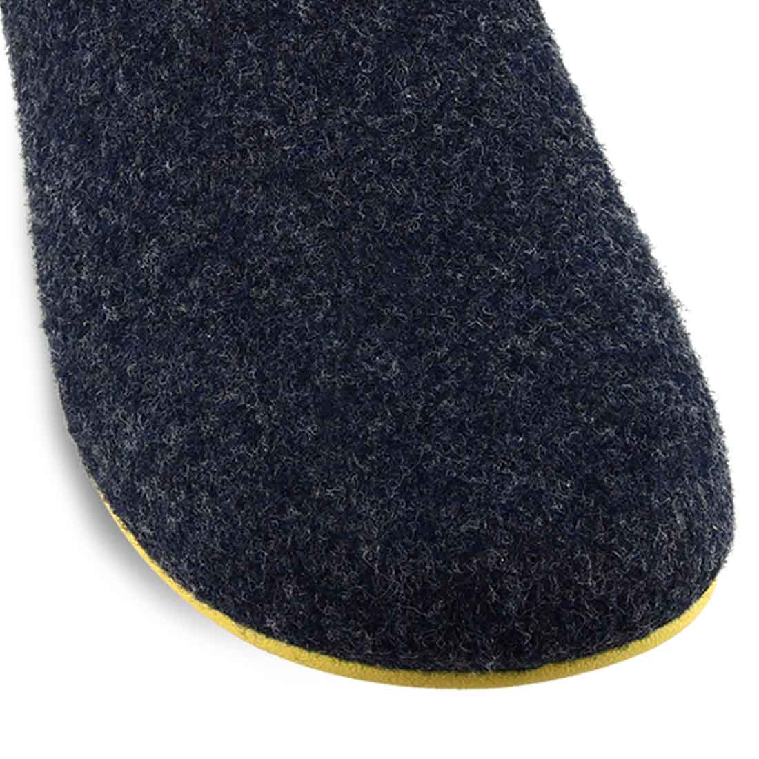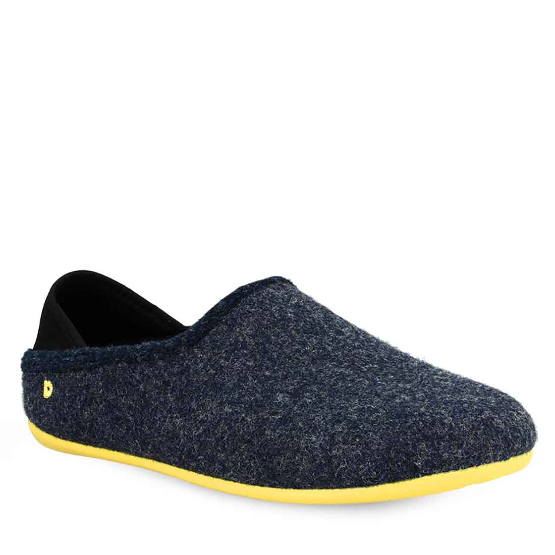 Κλειστές παντόφλες σπιτιού με μαλακό ύφασμα και λεπτομέρειες από τσόχα στο επάνω μέρος.Με λάστιχο στο πίσω μέρος και λαστιχέια σόλα που δεν γλιστράει.
