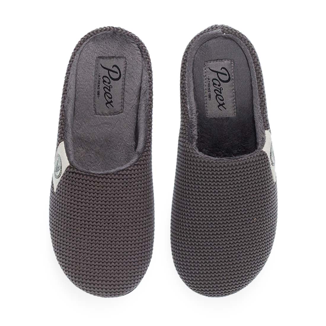 Ανδρικές παντόφλες σπιτιού Parex με πλεκτό σχέδιο . Eίναι κατασκευασμένες από ύφασμα και διαθέτουν βελουτέ εσωτερικό πάτο. Τέλεια στήριξη και εφαρμογή από αυτές τις επώνυμες παντόφλες σπιτιού Parex.