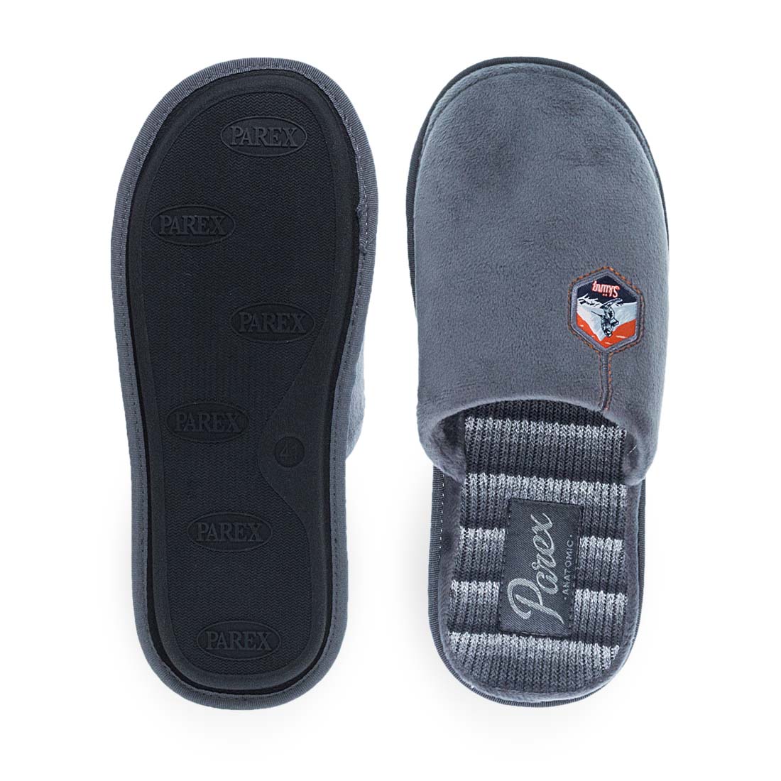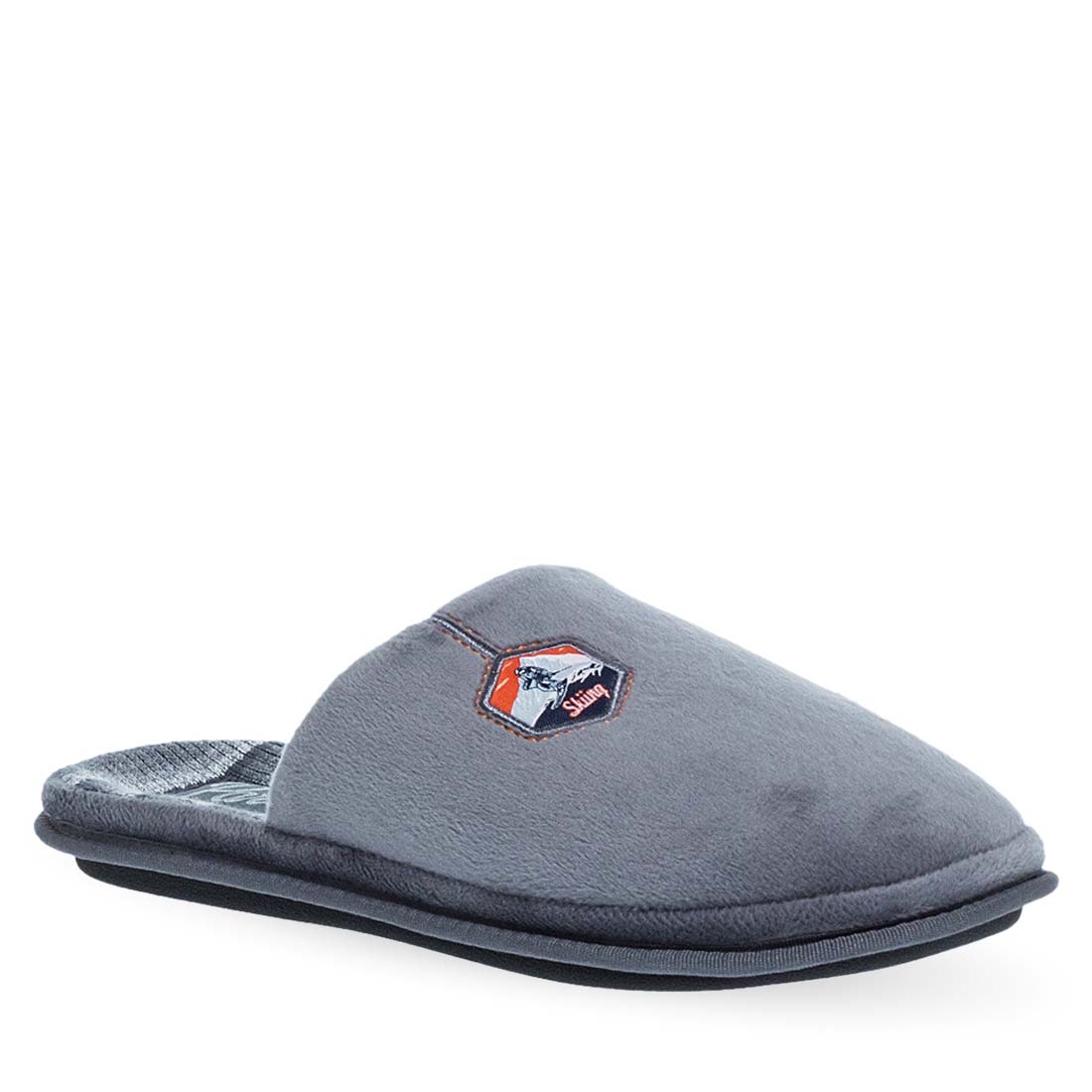 Ανδρικές παντόφλες σπιτιού Parex. Ανδρικές παντόφλες Parex σε γκρι και μπλε απόχρωση με διακριτικό patch «Skiing». Ανατομικός σχεδιασμός και εσωτερικός πάτος με επένδυση για άνεση όλη μέρα. Ιδανικές για τον χειμώνα.