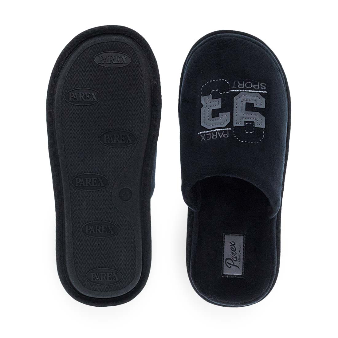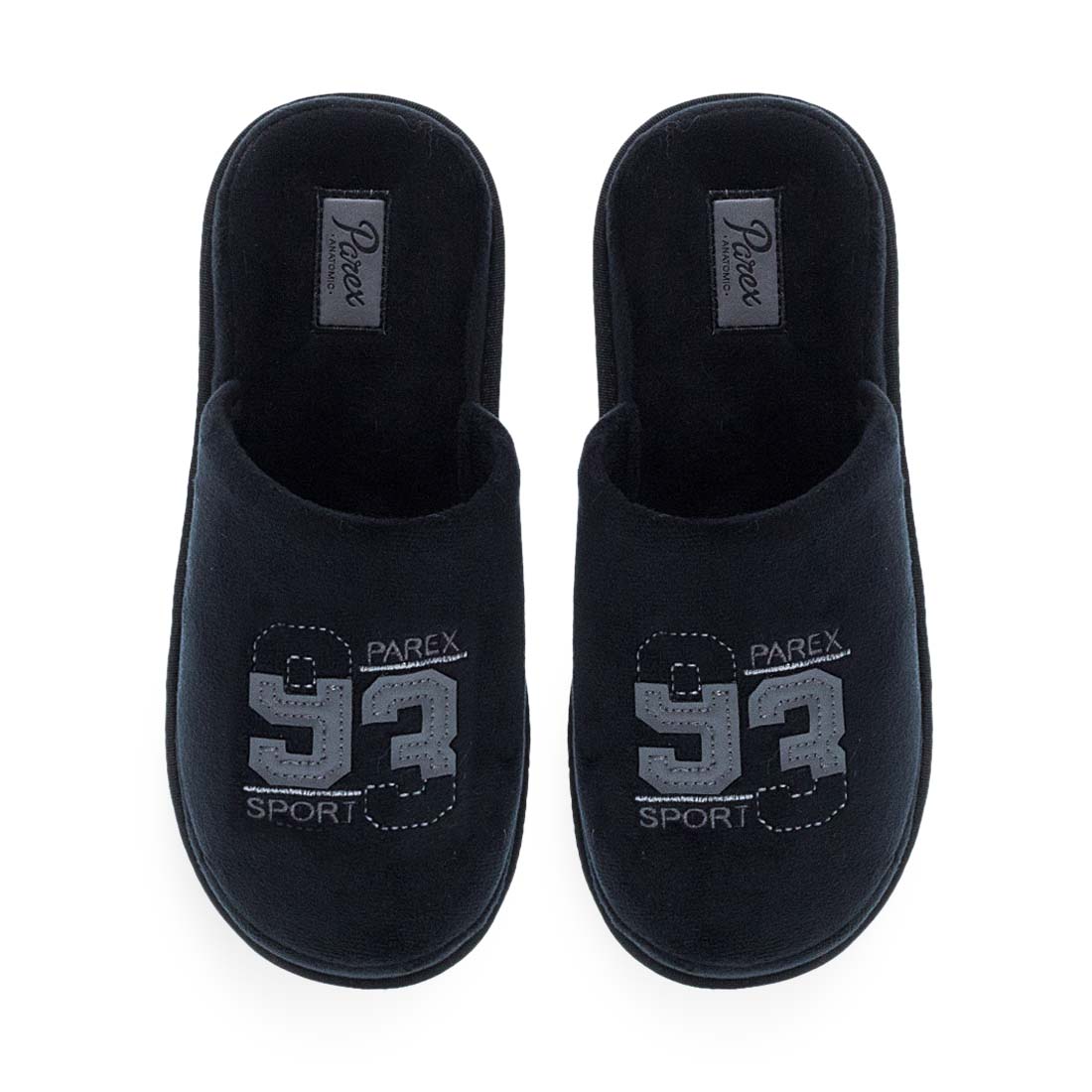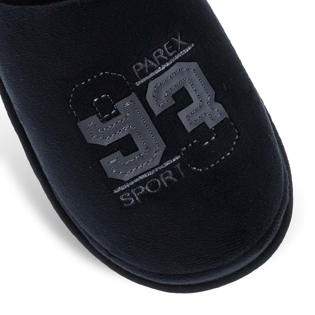 Ανδρικές παντόφλες σπιτιού Parex. Ανδρικές παντόφλες Parex σε μαύροκαι μπλε χρώμα με τύπωμα «SPORT 93». Ανατομικές, άνετες και ελαφριές, ιδανικές για καθημερινή χρήση.