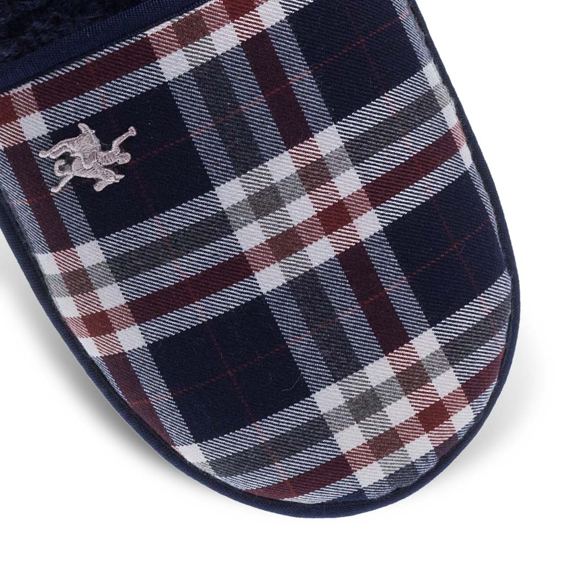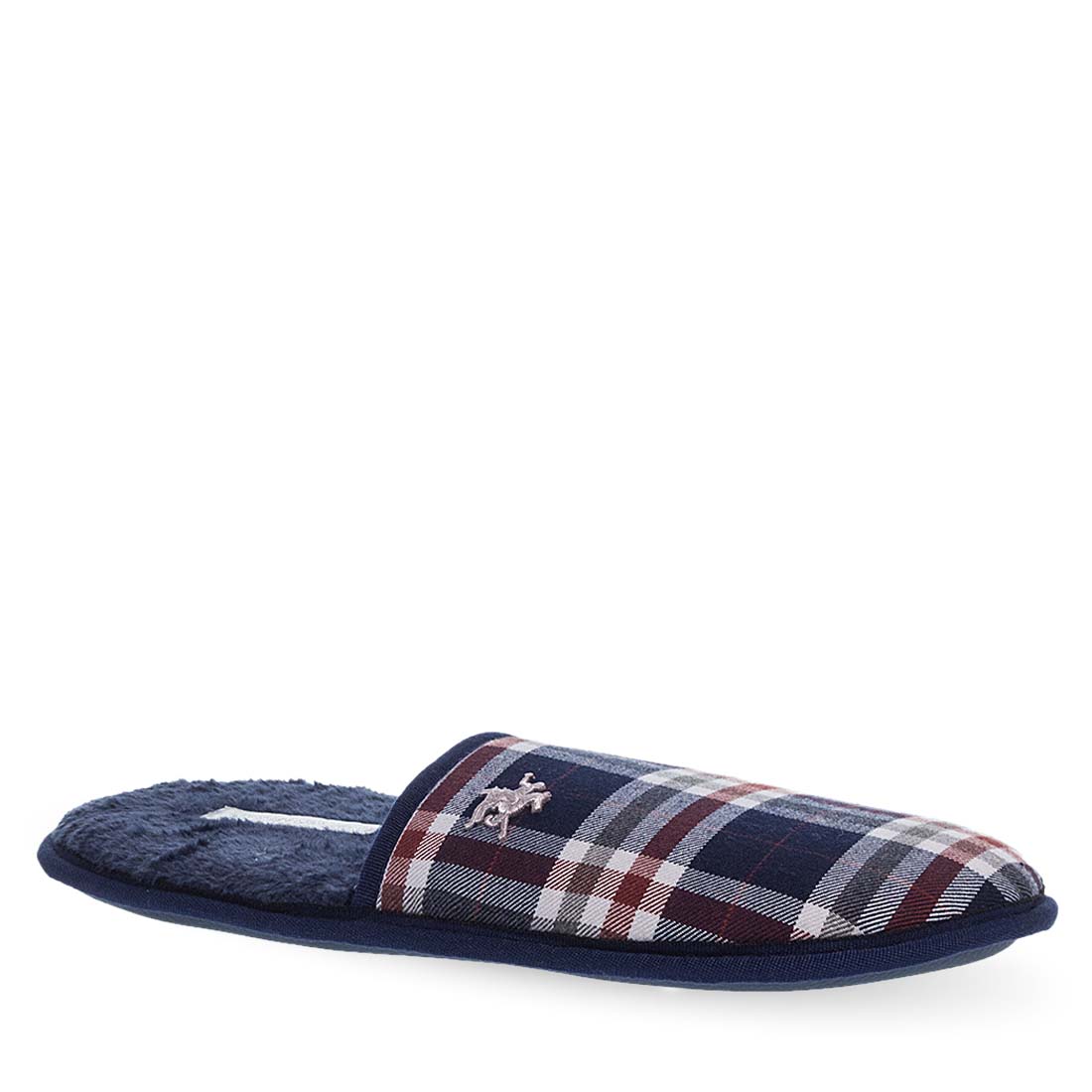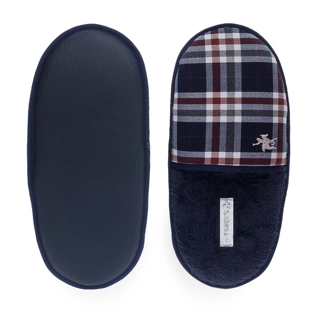 Ανδρικές υφασμάτινες παντόφλες σπιτιού με καρό σχέδιο στο επάνω μέρος. Είναι διαθέσιμες σε μπλε χρώμα και εσωτερικά διαθέτουν μαλακό και ζεστό πάτο. Ανδρικές παντόφλες Sabina που προσφέρουν μια ανάλαφρη και ξεκούραστη αίσθηση βαδίσματος.