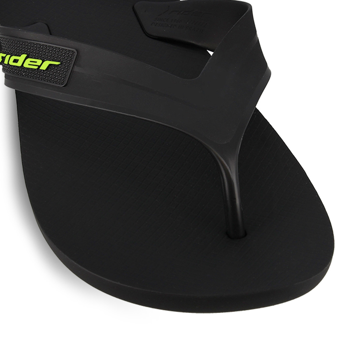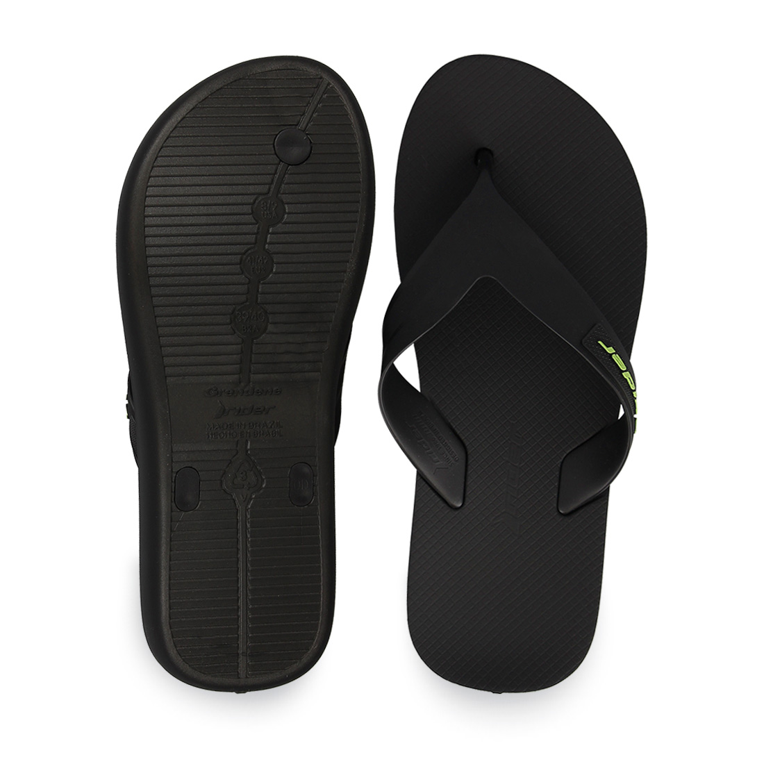 Ανδρικές σαγιονάρες θαλάσσης Rider. Πρόσθεσε άνεση και στιλ σε κάθε σου βήμα με αυτές τις ανδρικές σαγιονάρες από την νέα συλλογή της Rider. Διαθέσιμες σε μαύρο χρώμα με δίχαλο στο πάνω μέρος για εύκολη εφαρμογή και σταθερά βήματα. Μονόχρωμες με πράσινη λεπτομέρεια logo στο δίχαλο που ξεχωρίζει. Μαλακό πάτημα που ανακουφίζει τα κουρασμένα πόδια σας και εύκαμπτη αντιολισθητική σόλα. Ανδρικές σαγιονάρες από την Rider, εξαιρετικός συνδιασμός υλικών και χρωμάτων.