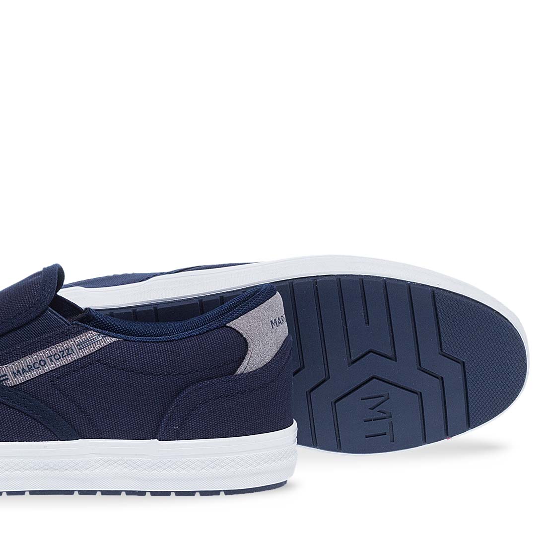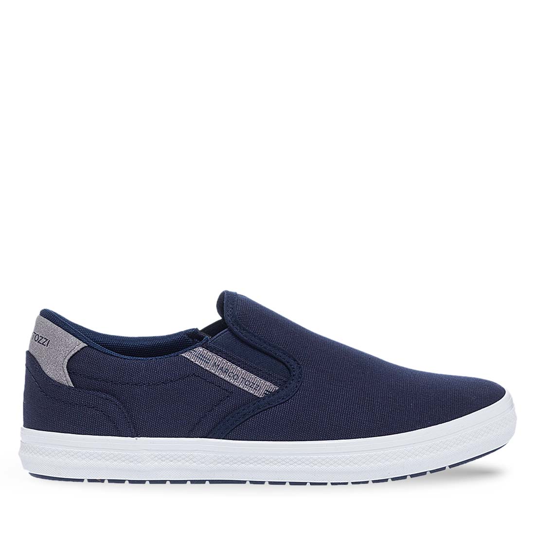 Μπλε ανδρικά Slip on παπούτσια από ανθεκτικό ύφασμα και συνθετικό δέρμα υψηλής ποιότητας. Ένας τέλειος συνδυασμός άνεσης και στιλ. Λευκή σόλα εξαιρετικά σταθερή. Διαθέτουν εύκολη εφαρμογή και ελαστικές λεπτομέρειες.