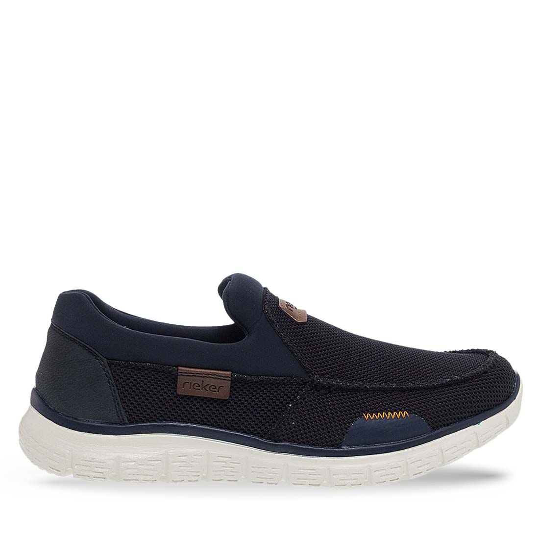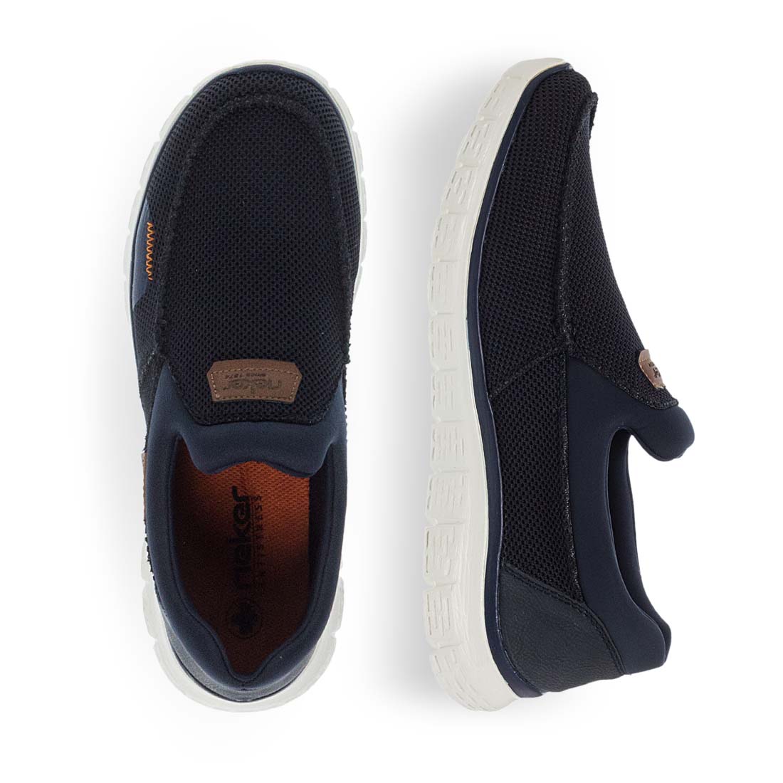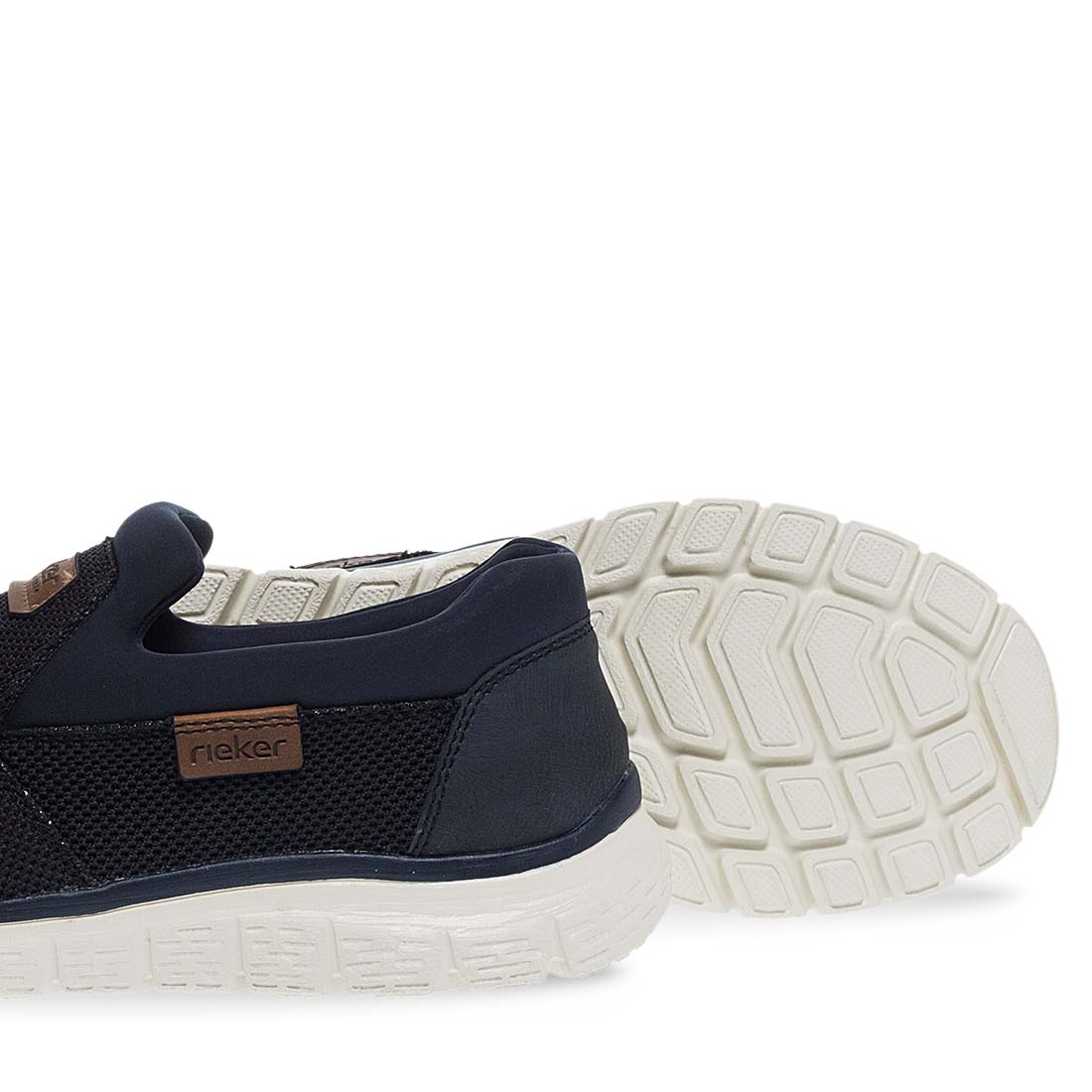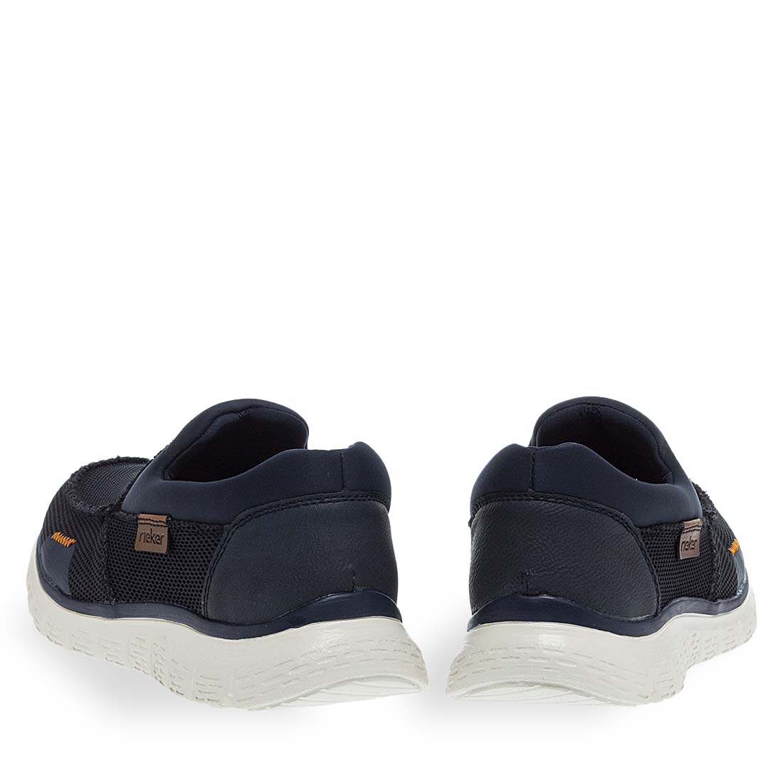 Ανδρικά slip on παπούτσια Rieker. Απόλαυσε άνεση και στιλ με αυτά τα άνετα ανδρικά slip on από την εταιρεία Rieker. Διαθέτουν ελαστικά πλαινά ώστε να προσαρμόζονται σε κάθε τύπο ποδιού. Αναπαυτικός πάτος και σόλα αντιολισθητική που απορροφά κραδασμούς. Διαθέσιμα σε μπλε χρώμα και λογότυπο στο πλάι. Εξαιρετικός συνδιασμός υλικών και χρωμάτων. Η απόλυτη επιλογή της σεζόν είναι αυτά τα ανδρικά slip on από την νέα συλλογή της Rieker.