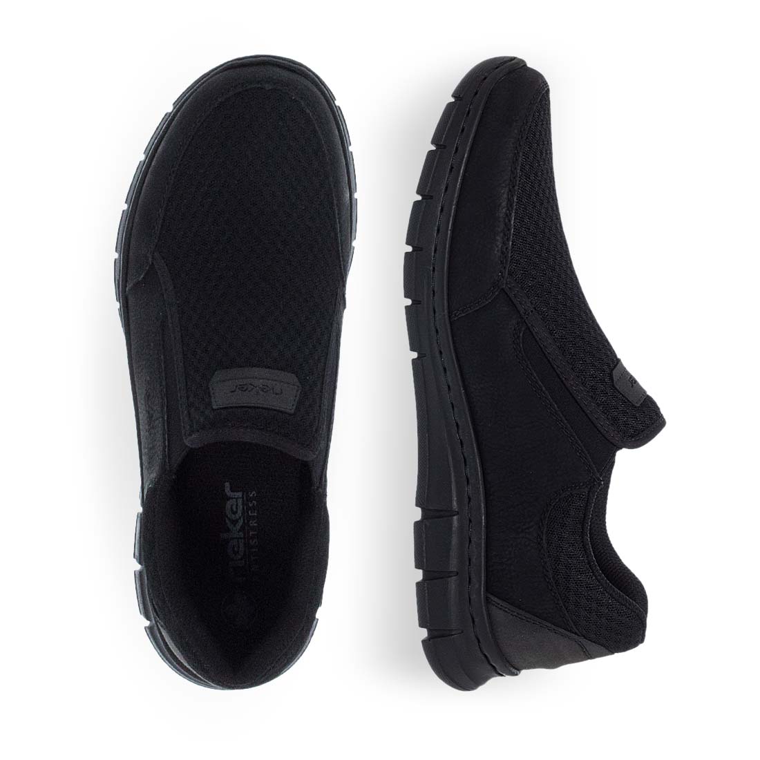 Ανδρικά slip on παπούτσια Rieker. Ψάχνεις την άνεση και το στιλ στα καθημερινά σου βήματα; Slip on σε casual γραμμή από την εταιρία Rieker. Μονόχρωμα,διαθέσιμα σε μαύρο χρώμα. Διαθέτουν λάστιχο για εύκολη εφαρμογή και πολύ μαλακό και άνετο πάτο.
