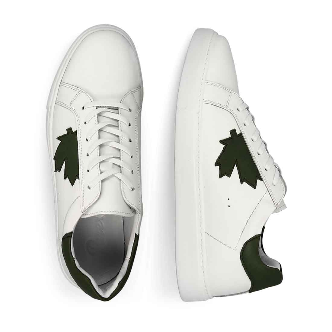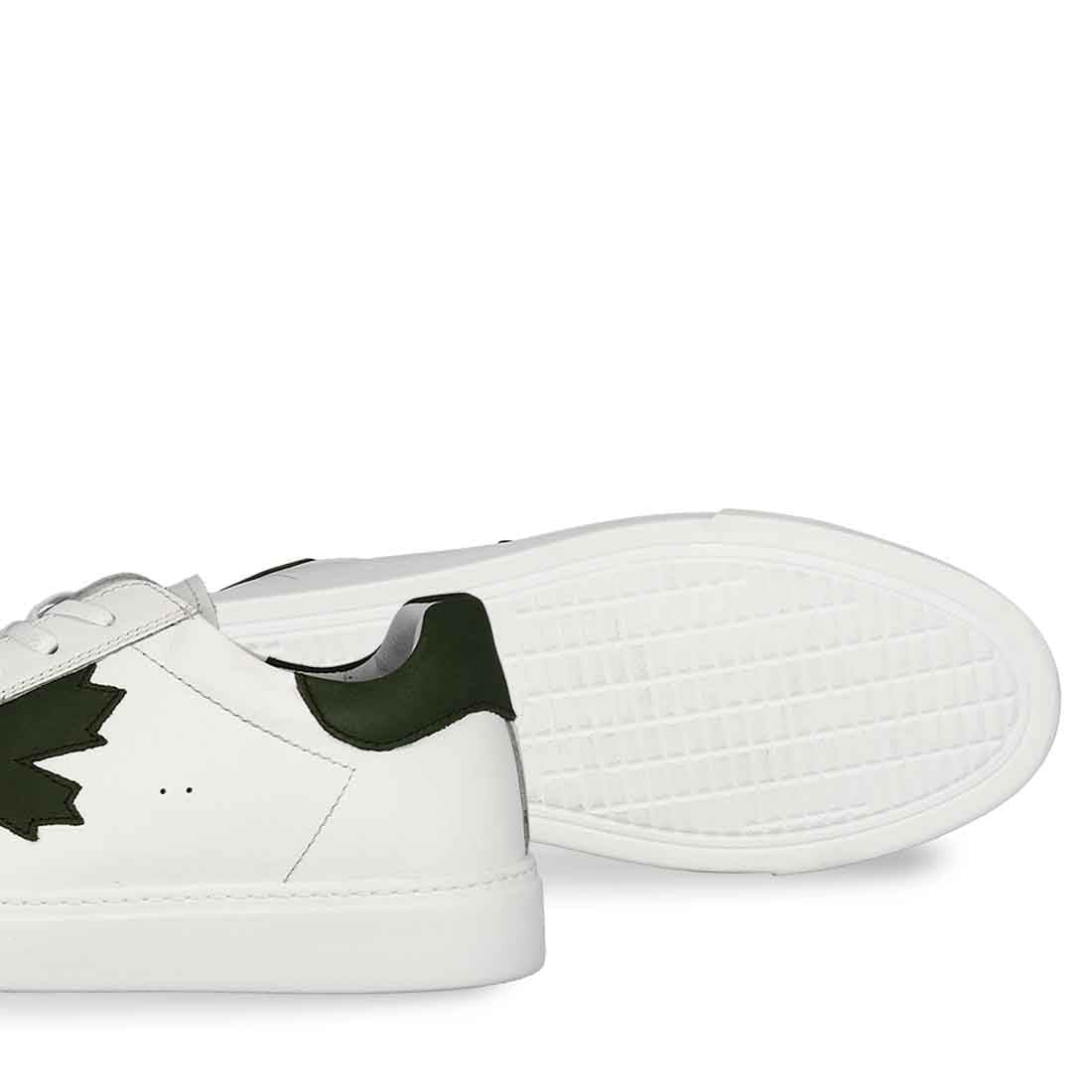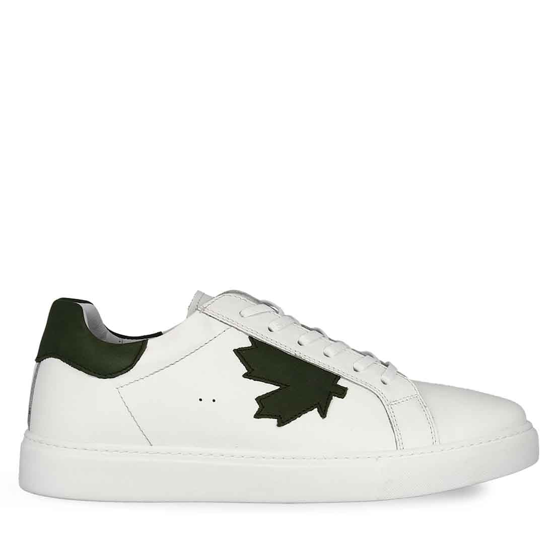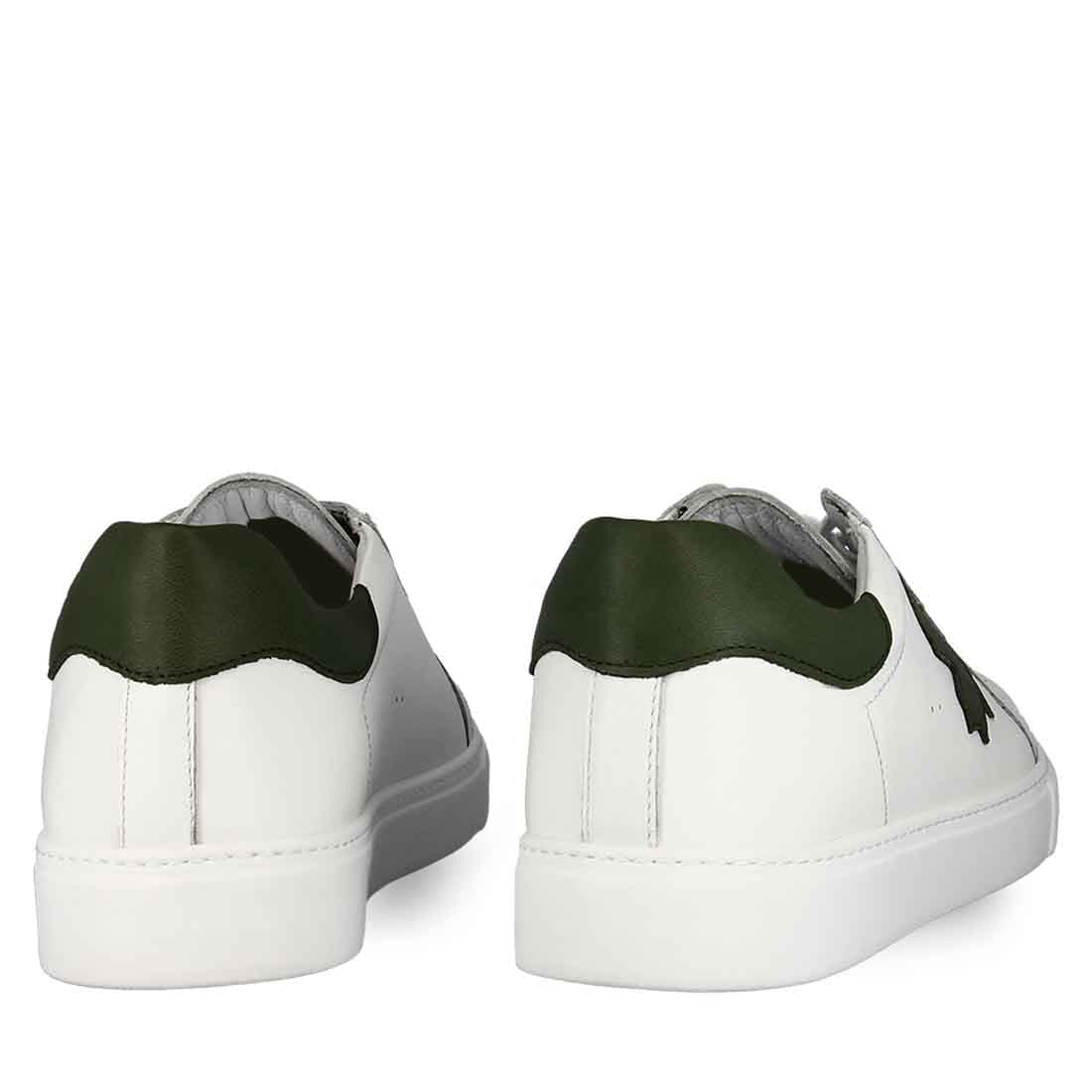 Λευκά casual δερμάτινα sneakers με κορδόνια και λευκή σόλα που δεν γλιστράει. Σχέδιο στο πλάι και ασορτί λεπτομέρεια στο πίσω μέρος.