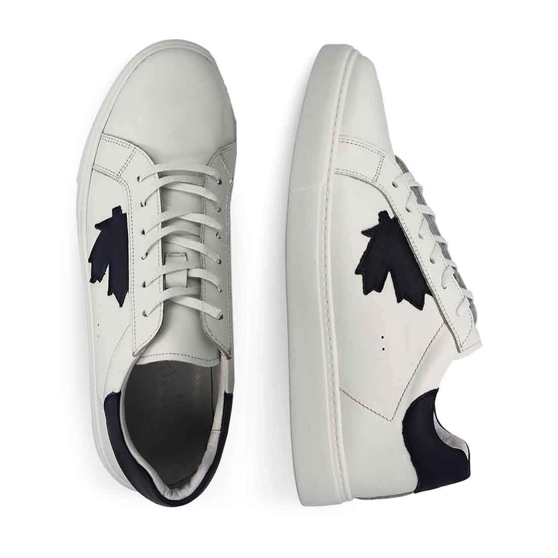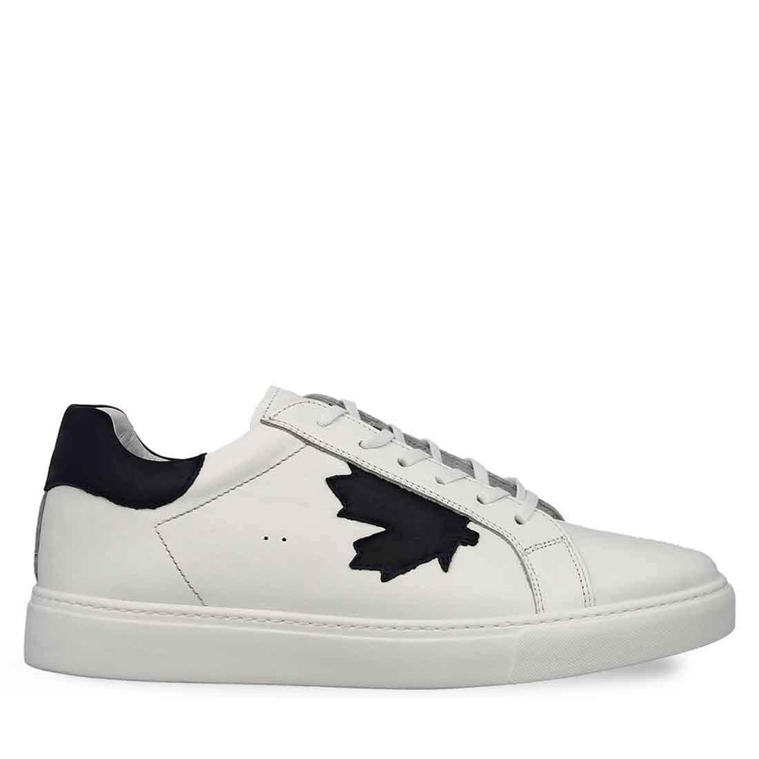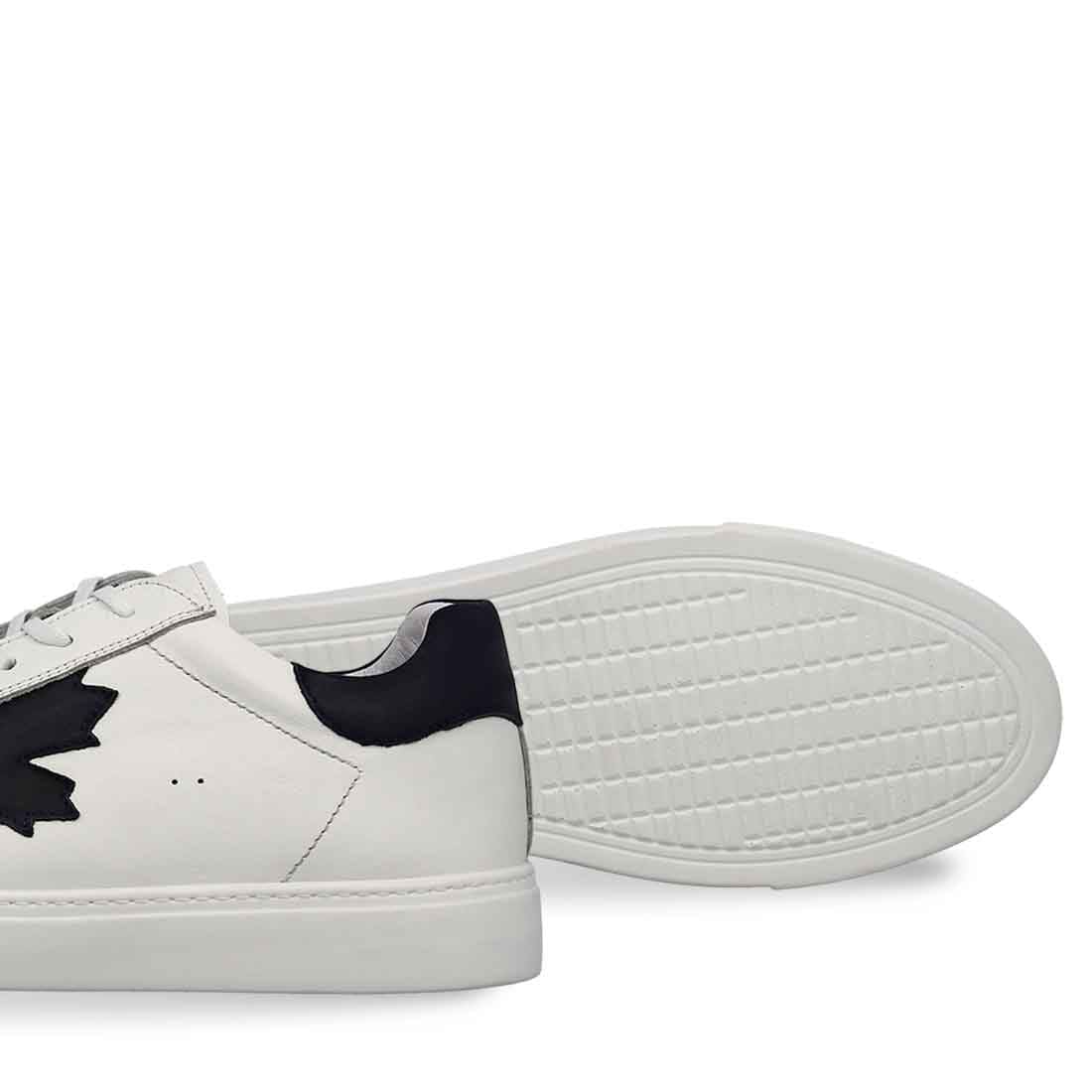 Λευκά casual δερμάτινα sneakers με κορδόνια και λευκή σόλα που δεν γλιστράει. Σχέδιο στο πλάι και ασορτί λεπτομέρεια στο πίσω μέρος.
