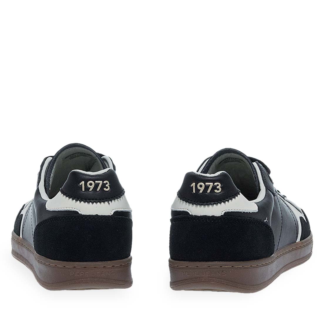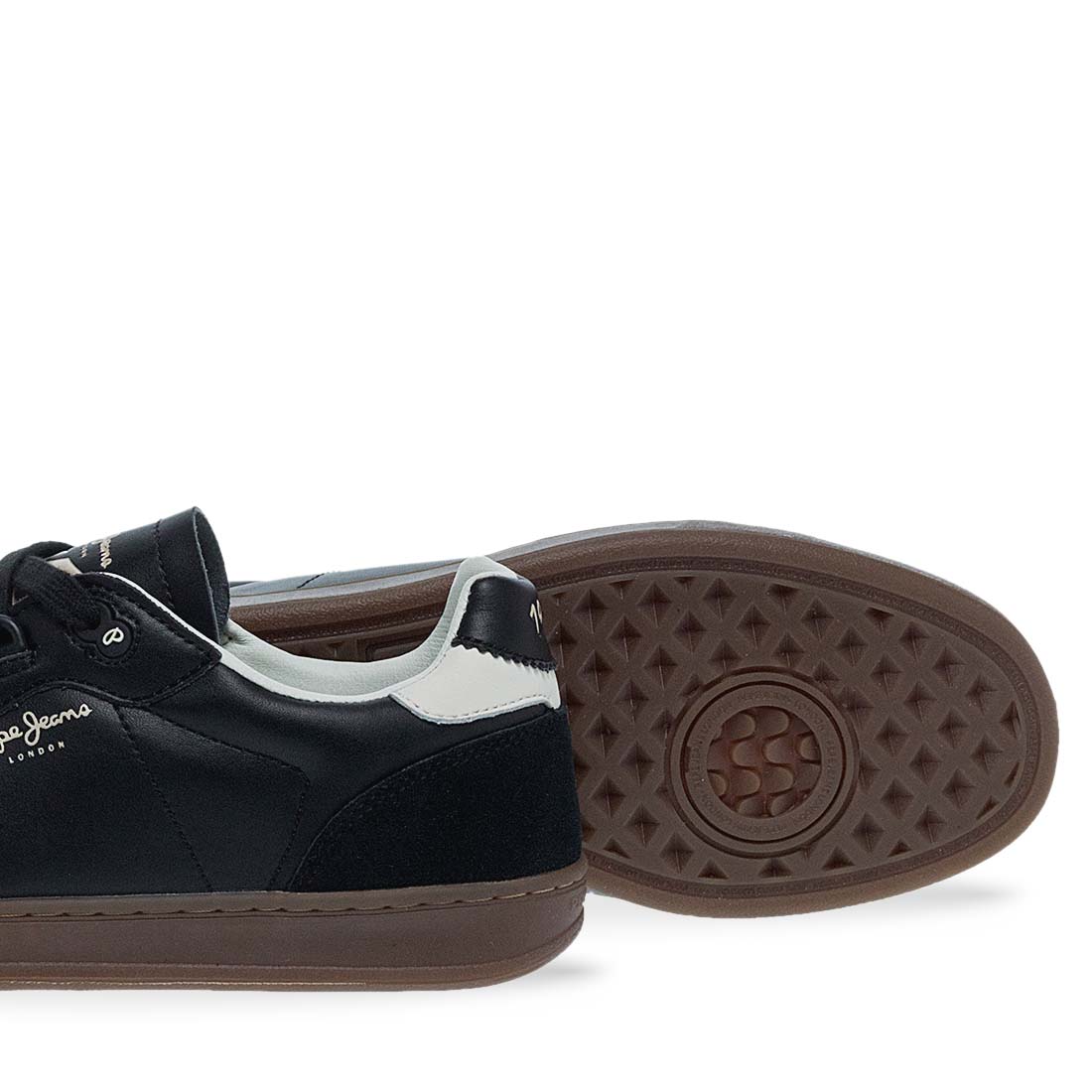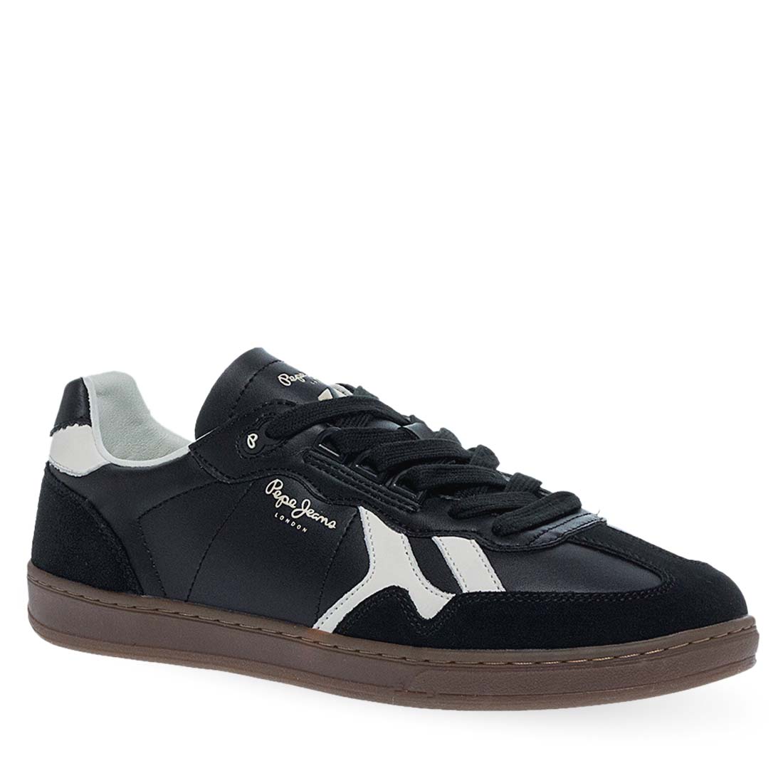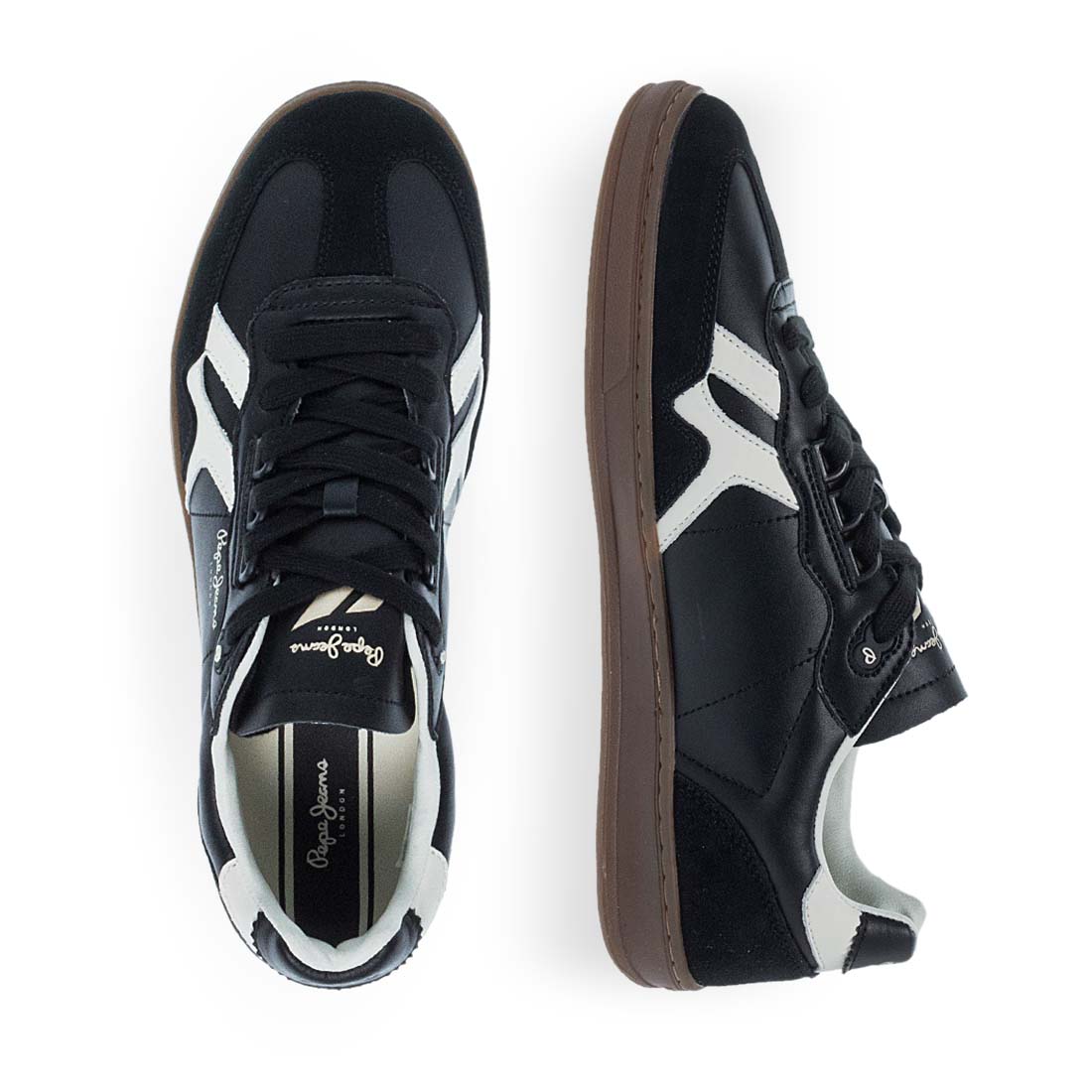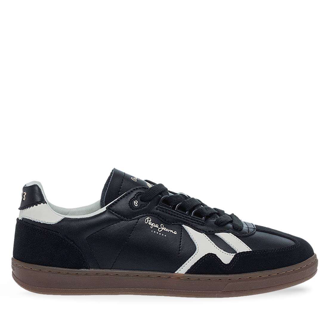 Ανδρικά δερμάτινα sneaker από το brand Pepe Jeans. Ανδρικά sneakers σε μαύρο χρώμα με λευκές λεπτομέρειες και καφέ σόλα. Κλασικός σχεδιασμός για casual καθημερινές εμφανίσεις.