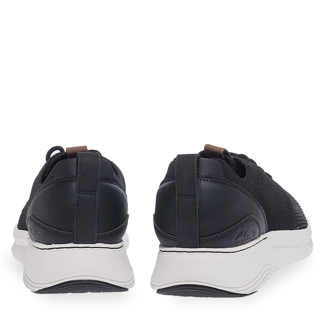 Άνετα και μοντέρνα sneaker από τη νέα συλλογή της εταιρείας Clarks. Έχουν σχεδιαστεί από ύφασμα υψηλής ποιότητας. Τα συγκεκριμένα sneaker κλείνουν με κορδόνια και διαθέτουν λευκή σόλα. Μια άνετη επιλογή με εξωτερικές ραφές. Διαθέσιμα σε μαύρο χρώμα.