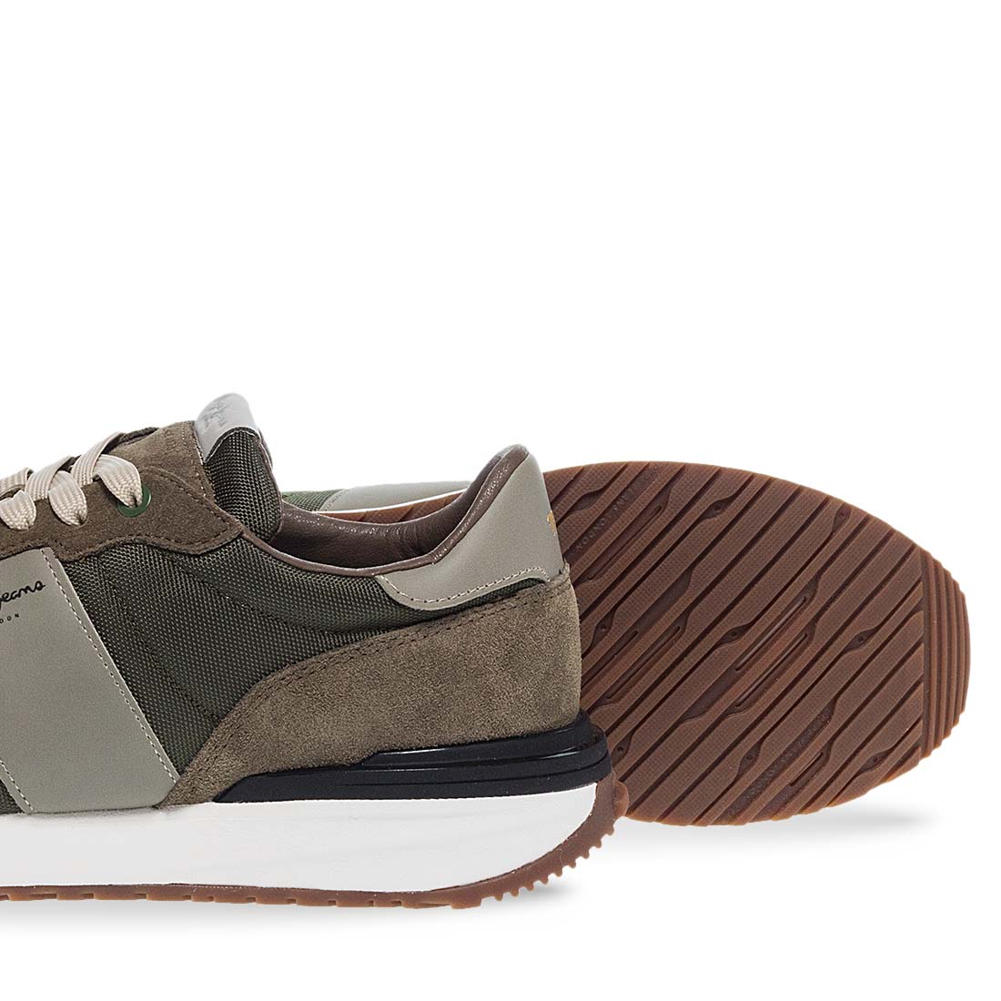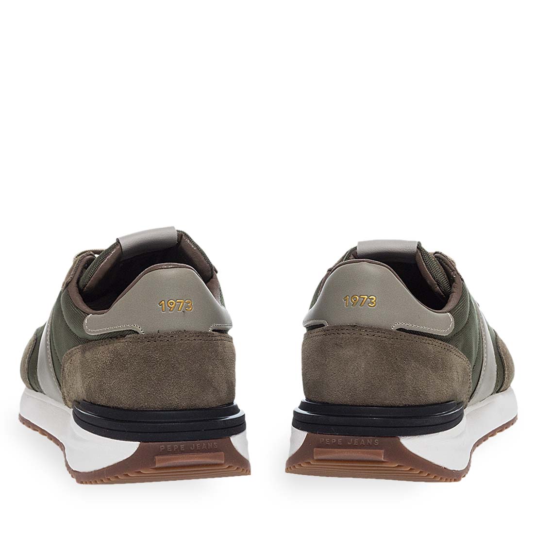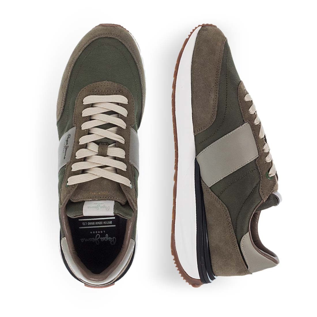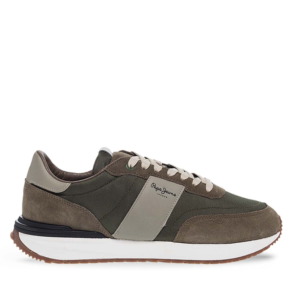 Χακί sneakers από το brand Pepe Jeans. Έχουν σχεδιαστεί από συνθετικό δέρμα και ύφασμα. Δέσιμο με κορδόνια για εύκολη εφαρμογή. Διαθέτουν αναπαυτικό πάτημα και σταθερή σόλα για άνετα βήματα όλη την ημέρα. Απολαύστε άνεση και στιλ με αυτά τα μοντέρνα sneakers.