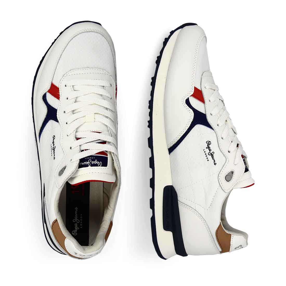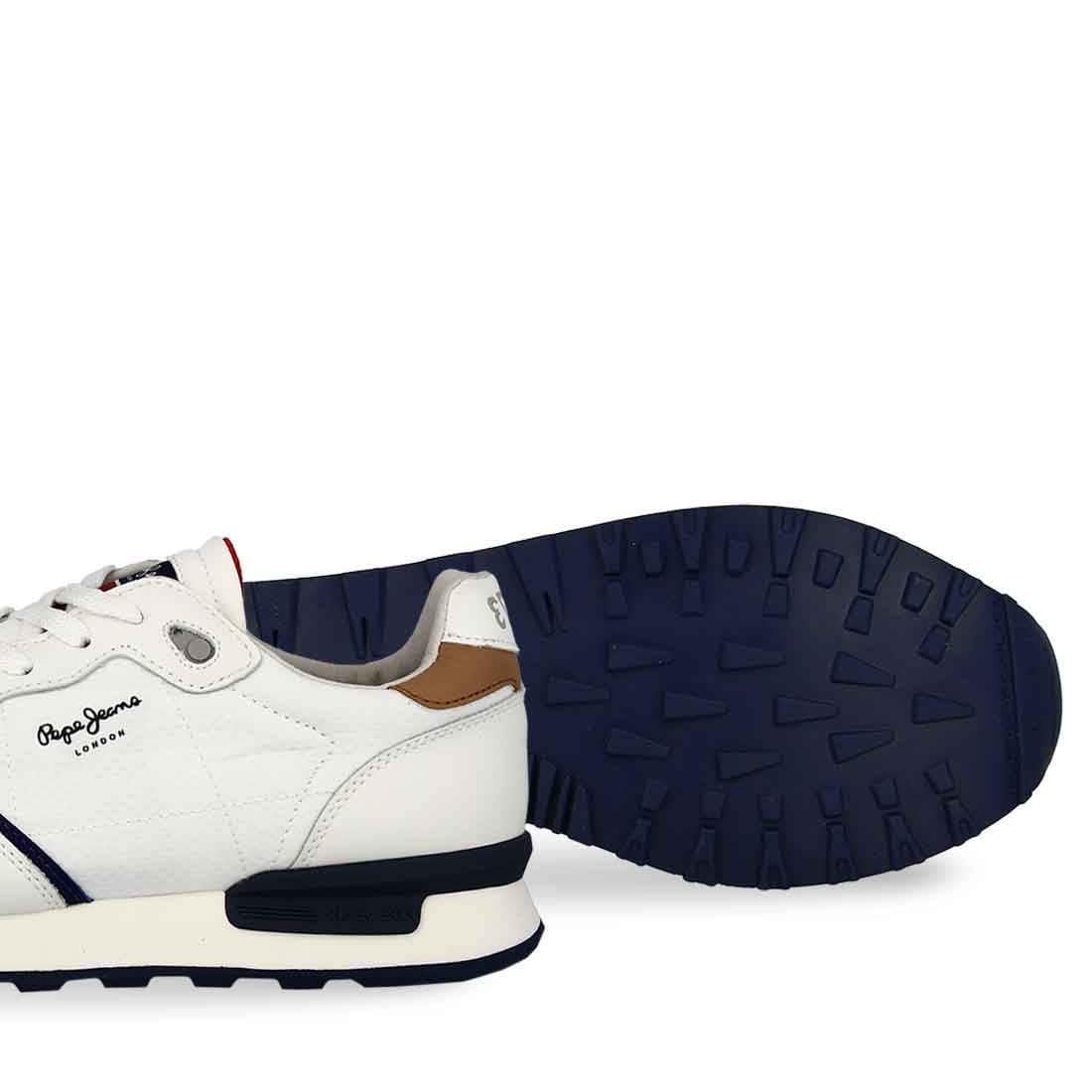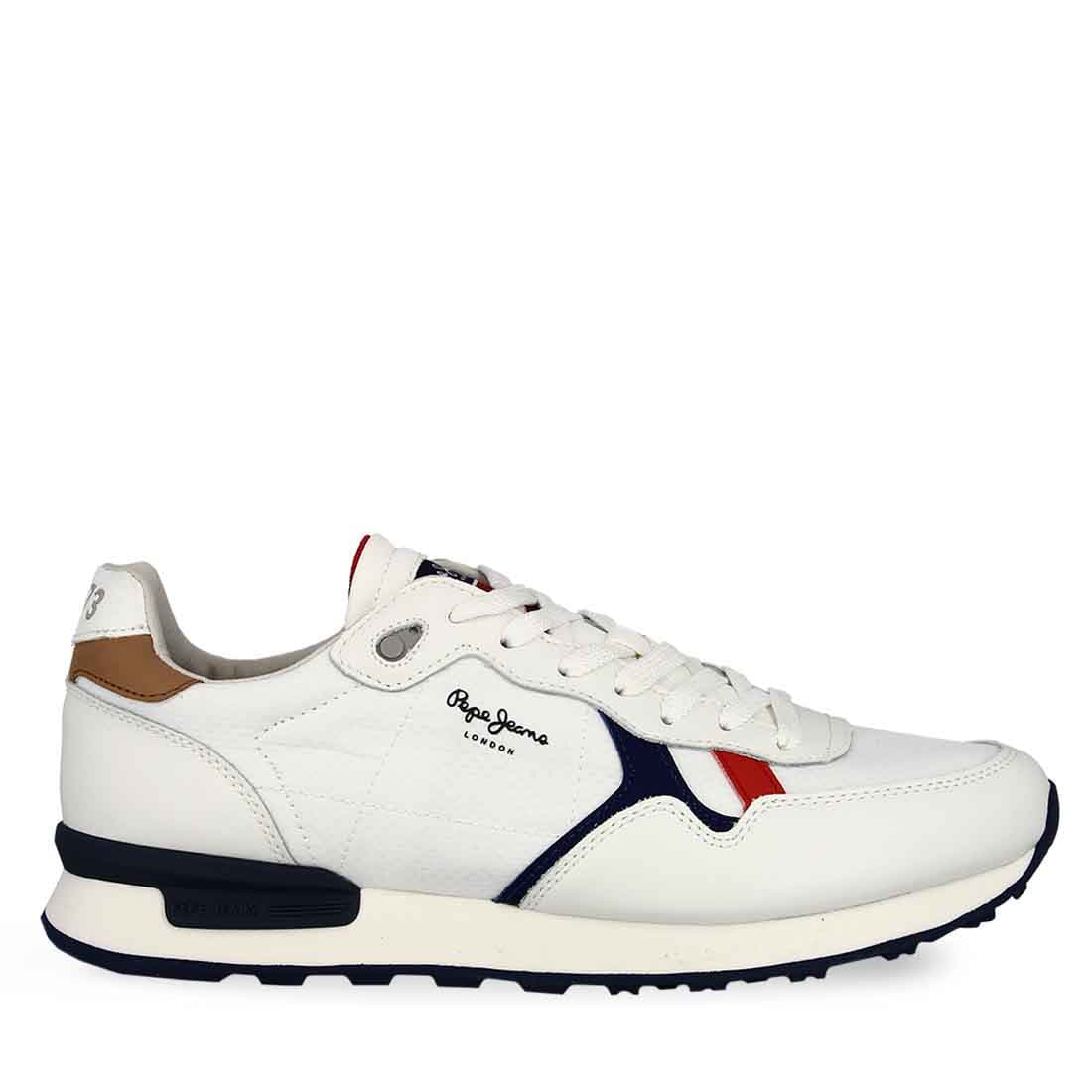 Ανδρικό αθλητικό υποδήμα του οίκου Pepe Jeans δομημένο απο άριστα υλικά για να ταιριάζει σε διάφορα σχήματα πέλματος και εγγυάται άριστη εφαρμογή ,στήριξη και άνεση στο περπάτημα. Σε λευκό χρώμα από συνθετικό δέρμα εξαιρετικής ποιότητας.