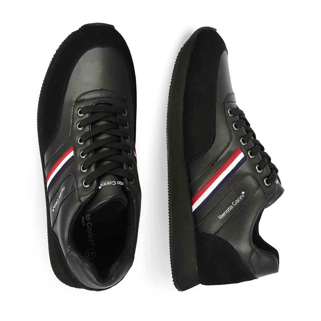 Renato Garini sneakers σε μαύρο χρώμα από συνδυασμό υλικών. Σχέδιο με κορδόνια και suede λεπτομέρειες. Σόλα που δεν γλιστράει. Χαρακτηριστική γραμμή στο πλάι. Ιδανικά για να αναβαθμίσεις τα casual look σου.