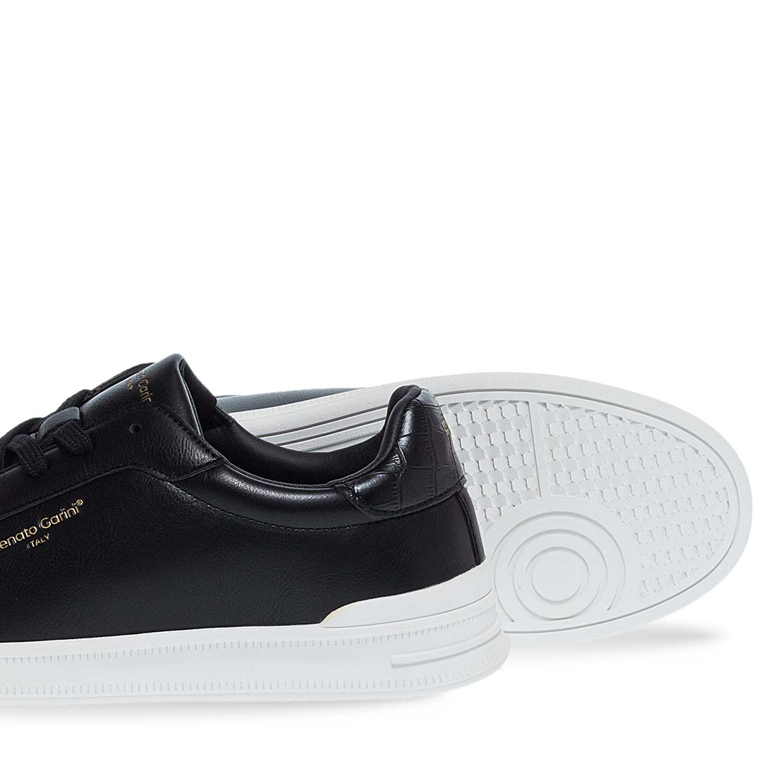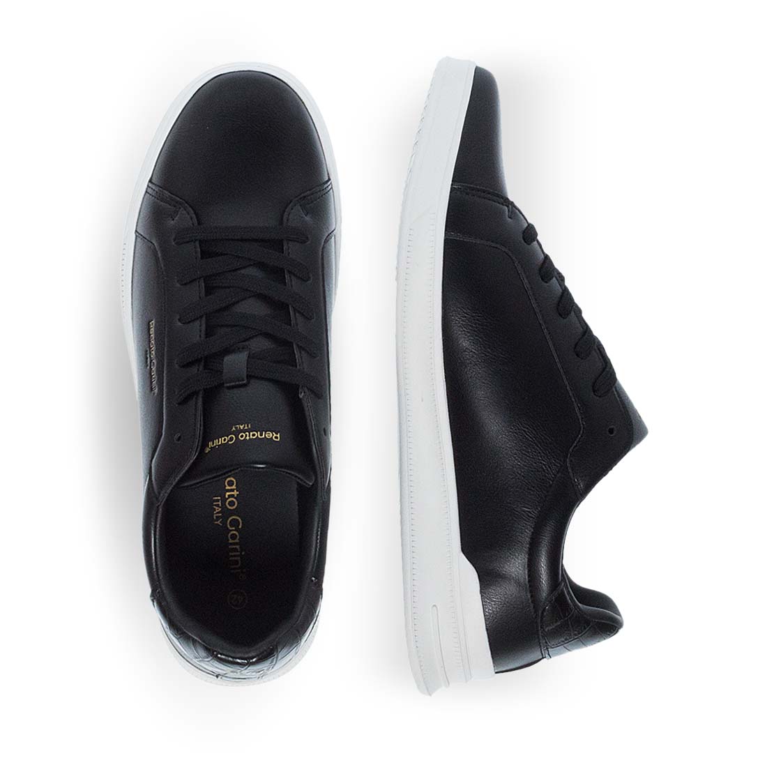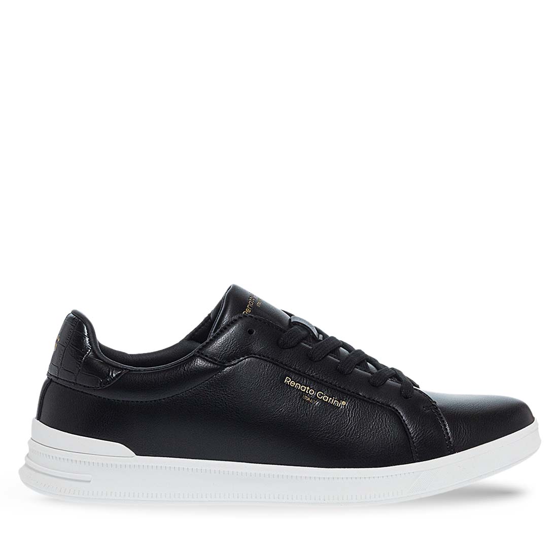 Ανδρικά sneaker Renato Garini. Αυτά τα ανδρικά sneaker από την Renato Garini είναι το διαχρονικό σχέδιο που κάθε άνδρας πρέπει να έχει στην συλλογή του. Συνθετικό δέρμα εξαιρετικής ποιότητας. Δένουν με κορδόνια ώστε να είναι εύκολα στην εφαρμογή τους. Μαλακό πάτημα και σταθερή ανθεκτική σόλα. Διαθέσιμα σε μαυρό χρώμα με λευκή σόλα και λογότυπο εμφανές στο πλάι.