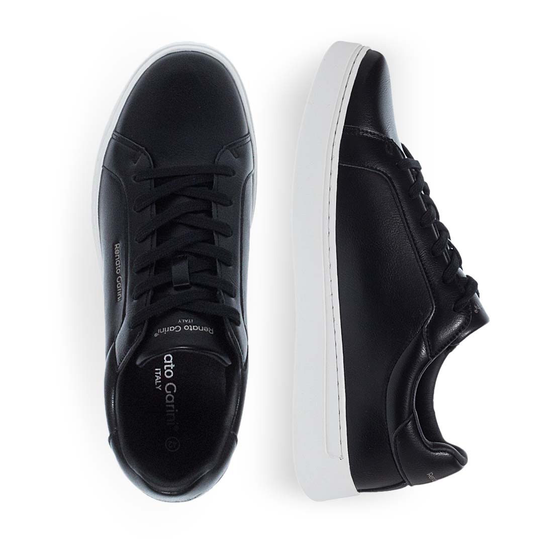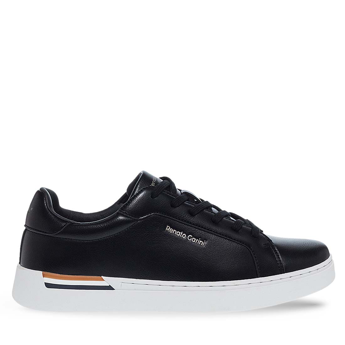 Ανδρικά sneakers Renato Garini από τη νέα συλλογή της αγαπημένης μας μάρκας. Διαθέσιμα σε μαύρο χρώμα,εμφανές logo στο πλάι,λευκή σόλα σε αντίθεση και λευκή λεπτομέρεια στο πίσω μέρος. Δένουν με κορδόνια για εύκολη εφαρμογή. Διαθέτουν αναπαυτικό πέλμα και ανθεκτική λευκή αντιολισθητική σόλα. Δώστε cool αέρα στο look σου με αυτά τα ανδρικά sneaker από την καλοκαιρινή συλλογή Renato Garini. Συνθετικό δέρμα εξαιρετικής ποιότητας. Άνετα και μοντέρνα sneakers για κάθε στιγμή της ημέρας.