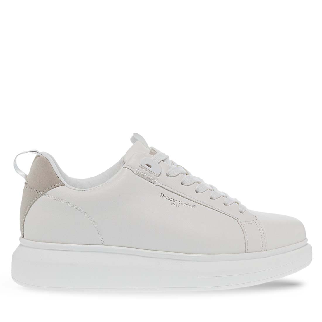 Ανδρικά sneaker Renato Garini από συνθετικό δέρμα άριστης ποιότητας, διαθέσιμα σε λευκό χρώμα.Τα συγκεκριμενα παπούτσια είναι ιδανικά για να φορεθούν σε κάθε περίσταση. Λευκά sneaker με κορδόνια και θηλιά στο πίσω μέρος. Λογότυπο στο πλάι. Φλατ σόλα που δεν γλιστράει.
