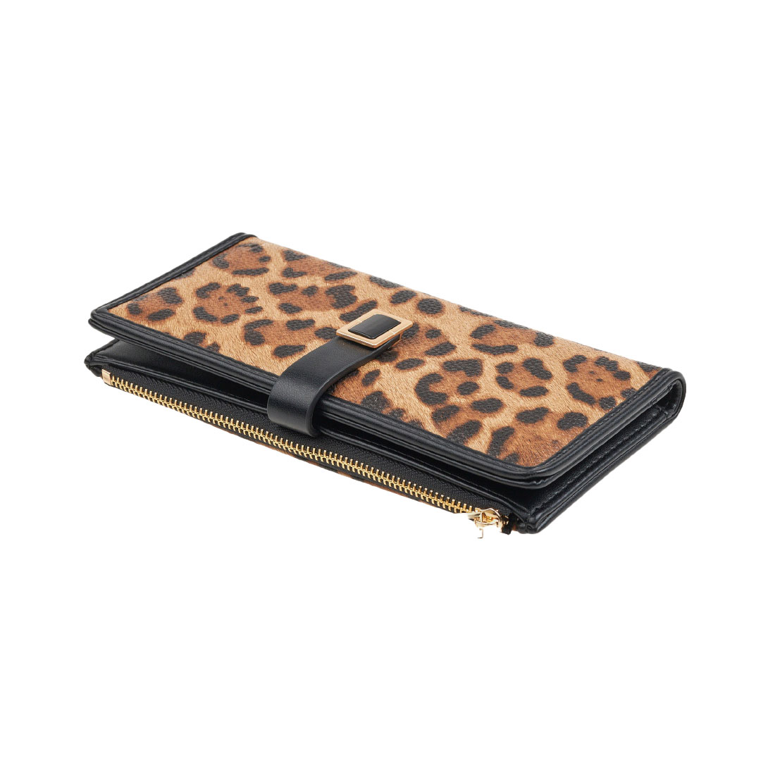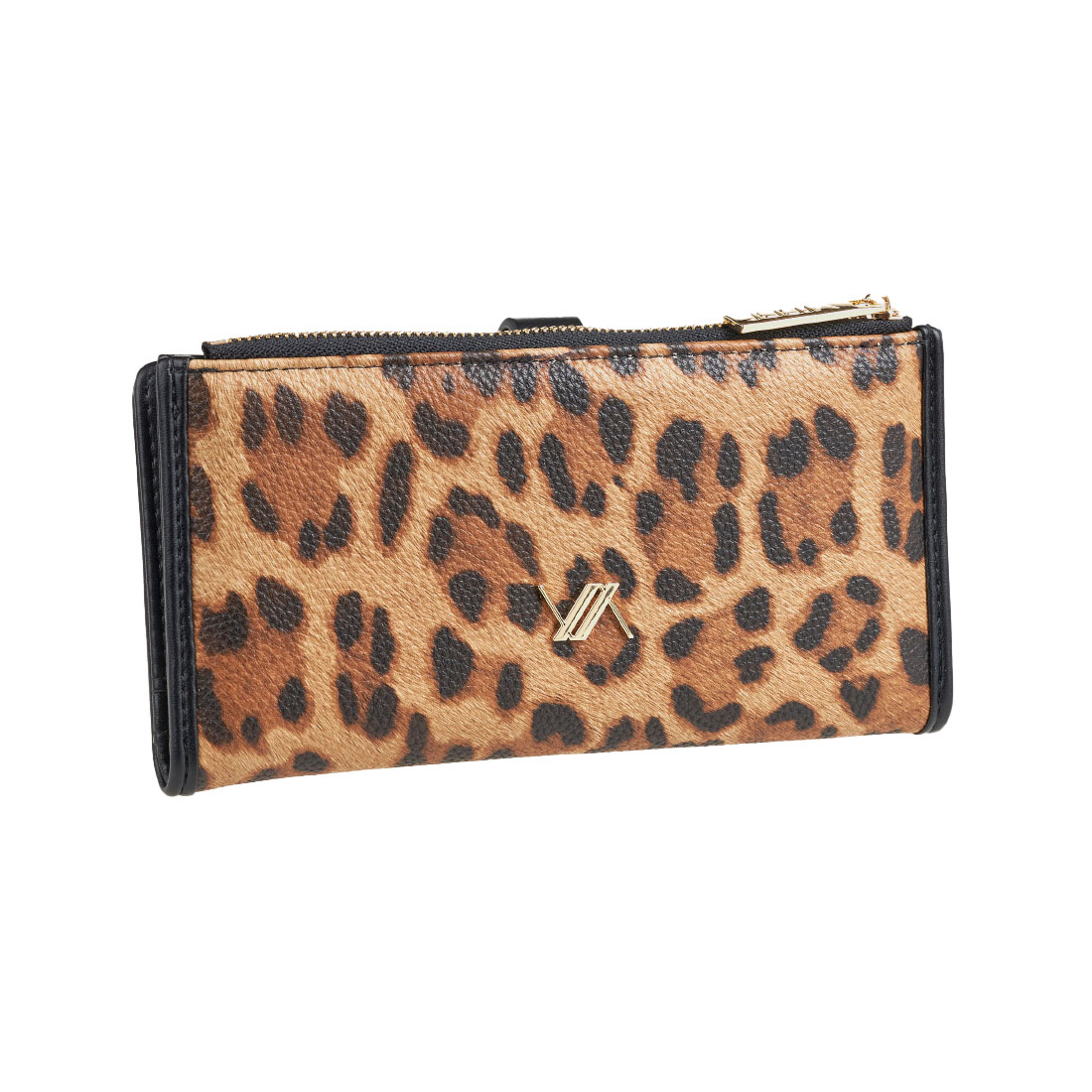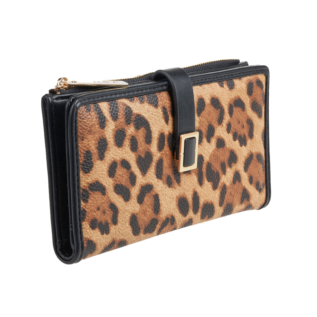 Γυναικείo πορτοφόλι Verde. Μεγάλο πορτοφόλι Verde με leopard μοτίβο και μαύρο λουράκι. Διαθέτει πολλές θήκες και κλείσιμο με φερμουάρ. Διαστάσεις: 19x2x10 cm.
