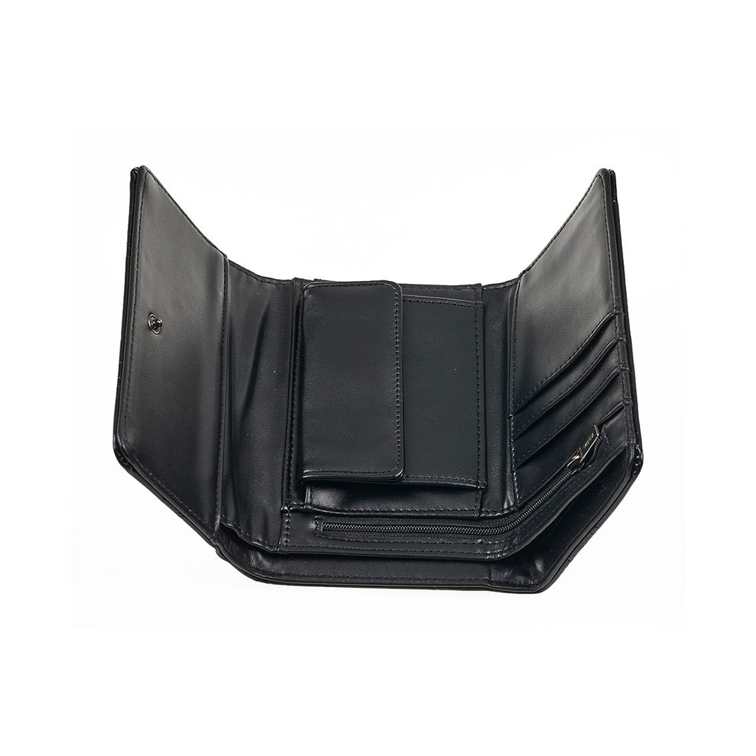Γυναικείο πορτοφόλι της εταιρείας Verde σε χρώμα μαύρο και μπορντώ. Διαστάσεις: 15x2x10,5.