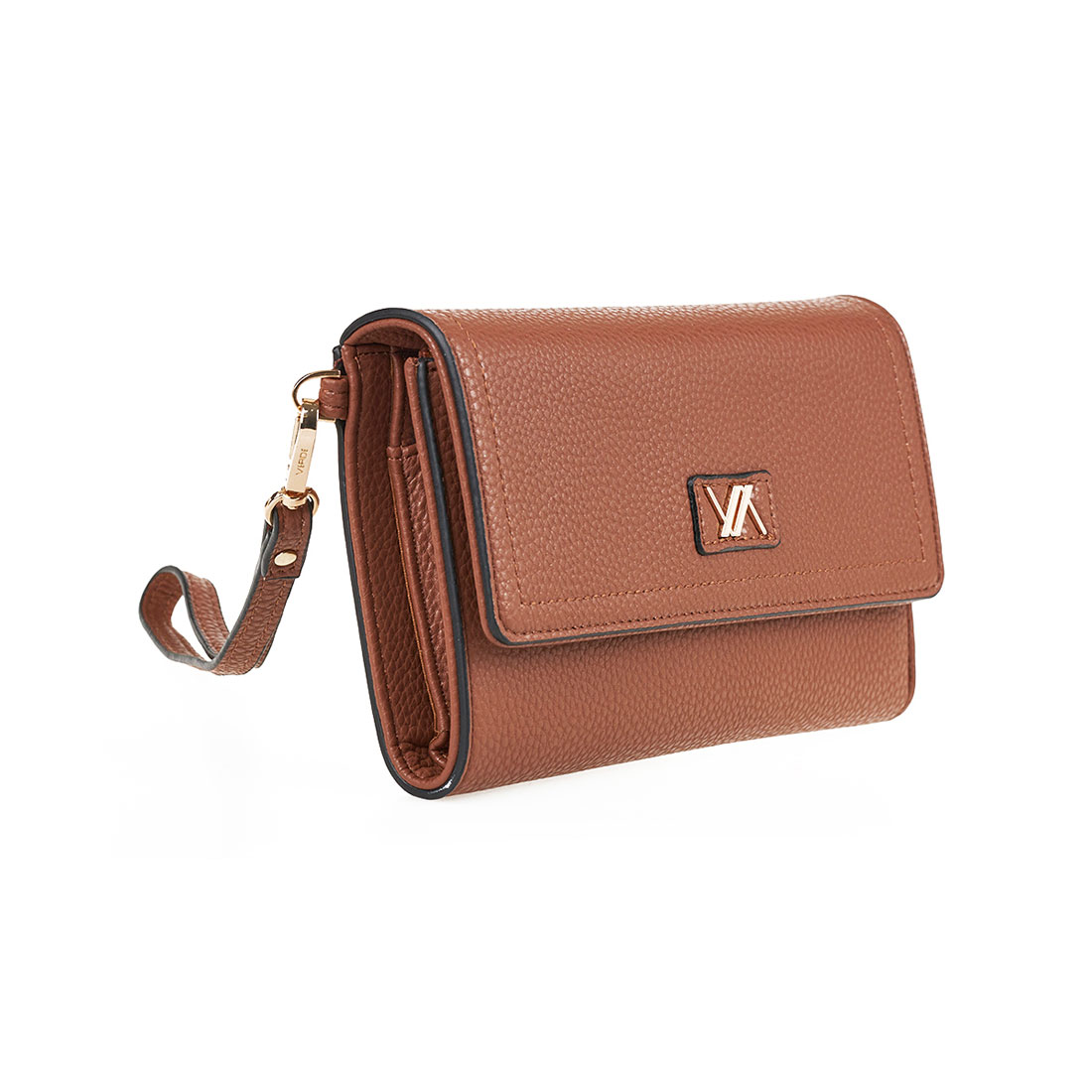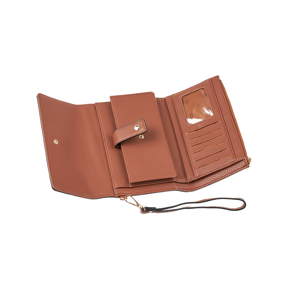 Γυναικείο πορτοφόλι της εταιρείας Verde σε χρώμα μαύρο, κάμελ και πράσινο. Διαστάσεις: 19x2,5x13.