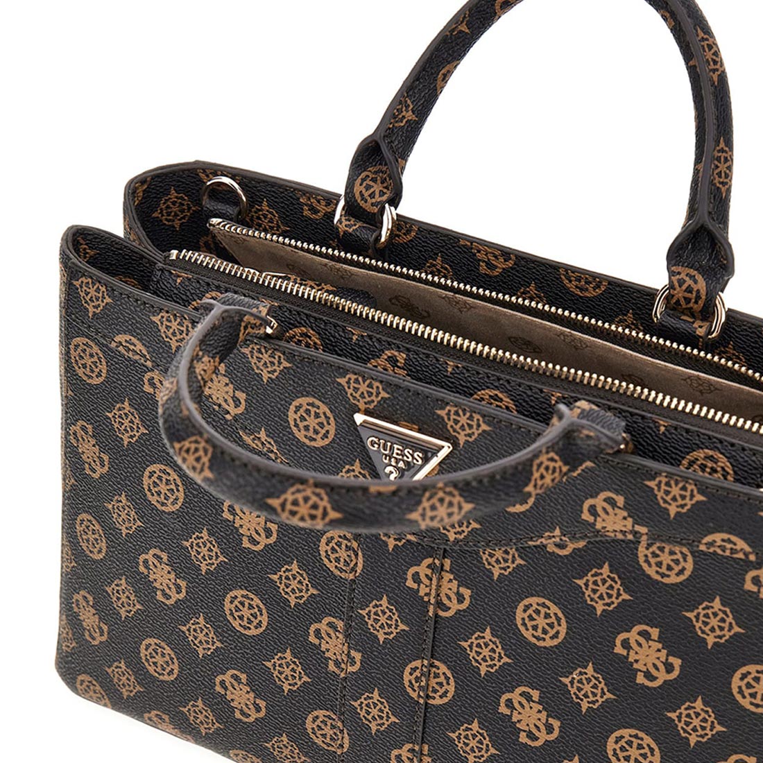 Γυναικεία τσάντα Guess σε χρώμα καφέ. Ιδανική επιλογή για όλες τις ώρες της ημέρας για άνεση και στυλ. Διαστάσεις: 31x20x12 cm