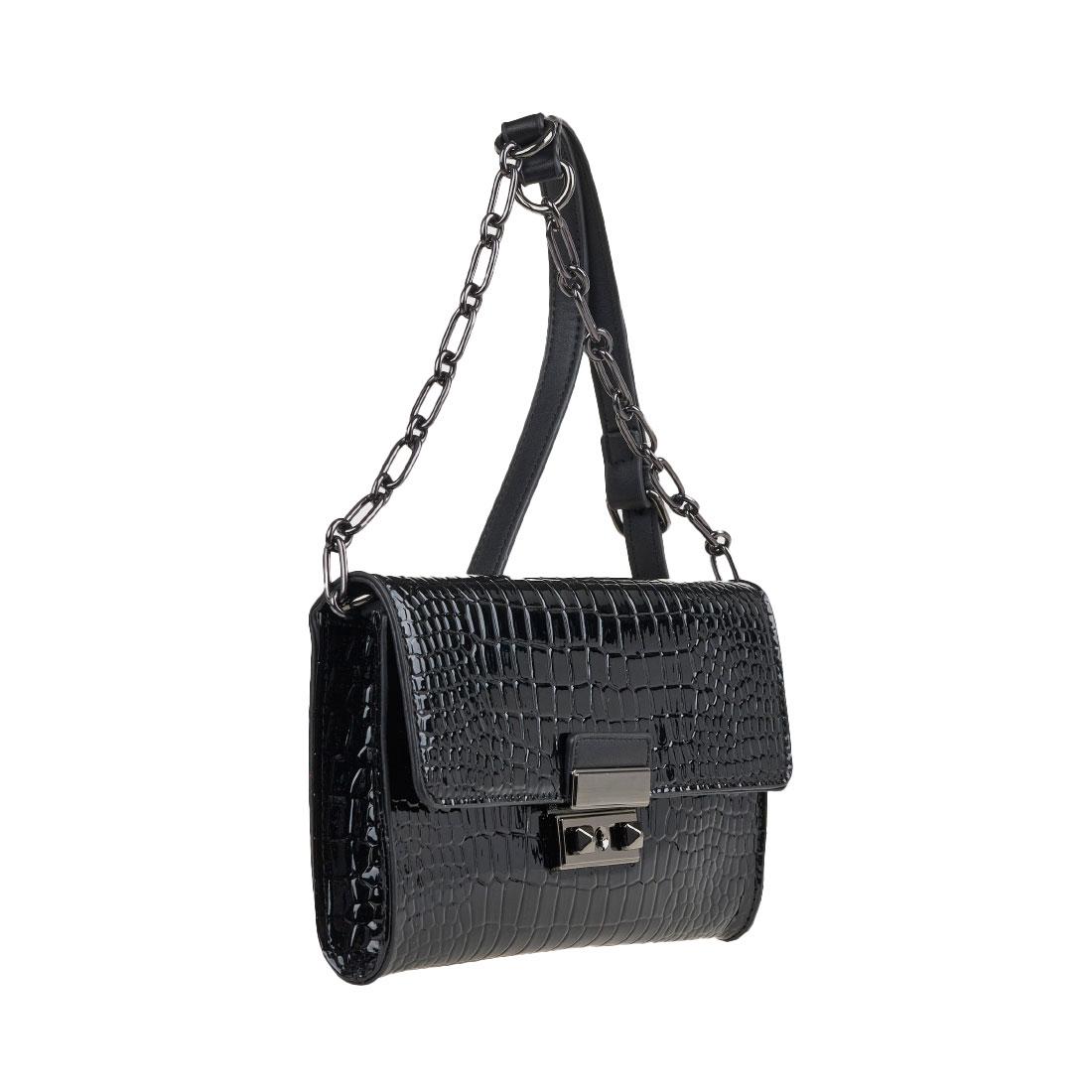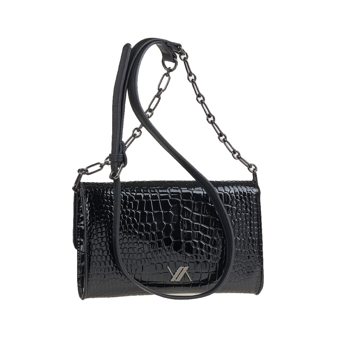 Γυναικεία τσάντα χιαστί Verde. Μικρή γυναικεία τσάντα χιαστί Verde με crocodile μοτίβο και μοντέρνο κούμπωμα, για άνεση και στιλ. Διαστάσεις: 23x4x14 cm.
