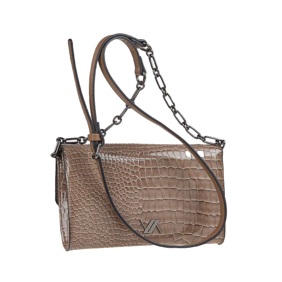 Γυναικεία τσάντα χιαστί Verde. Μικρή γυναικεία τσάντα χιαστί Verde με crocodile μοτίβο και μοντέρνο κούμπωμα, για άνεση και στιλ. Διαστάσεις: 23x4x14 cm.