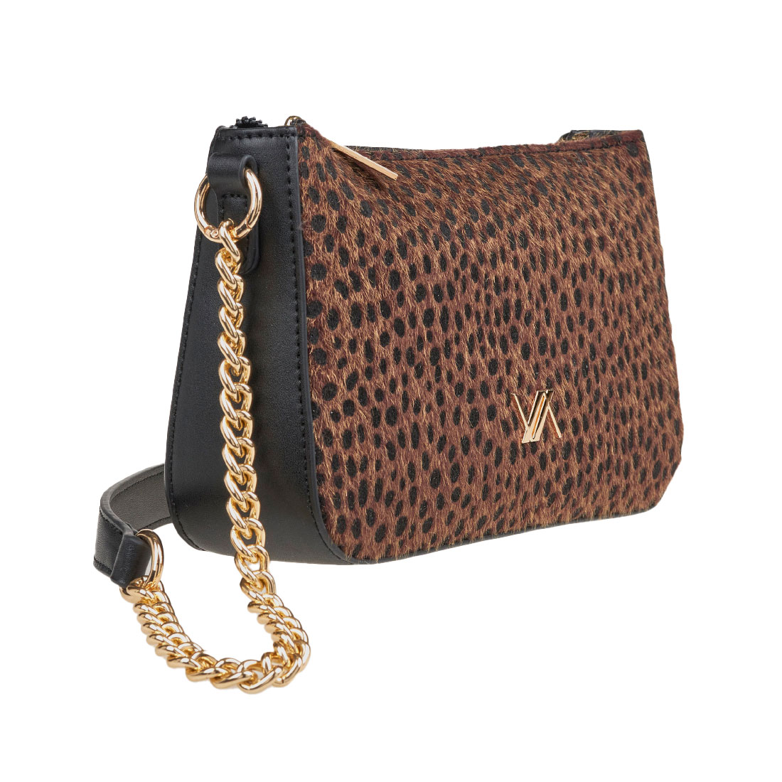 Γυναικεία τσάντα χιαστί Verde. Μοντέρνα τσάντα χιαστί Verde, διαθέσιμη σε animal-print υφή. Διαστάσεις: 26x6x15 cm.