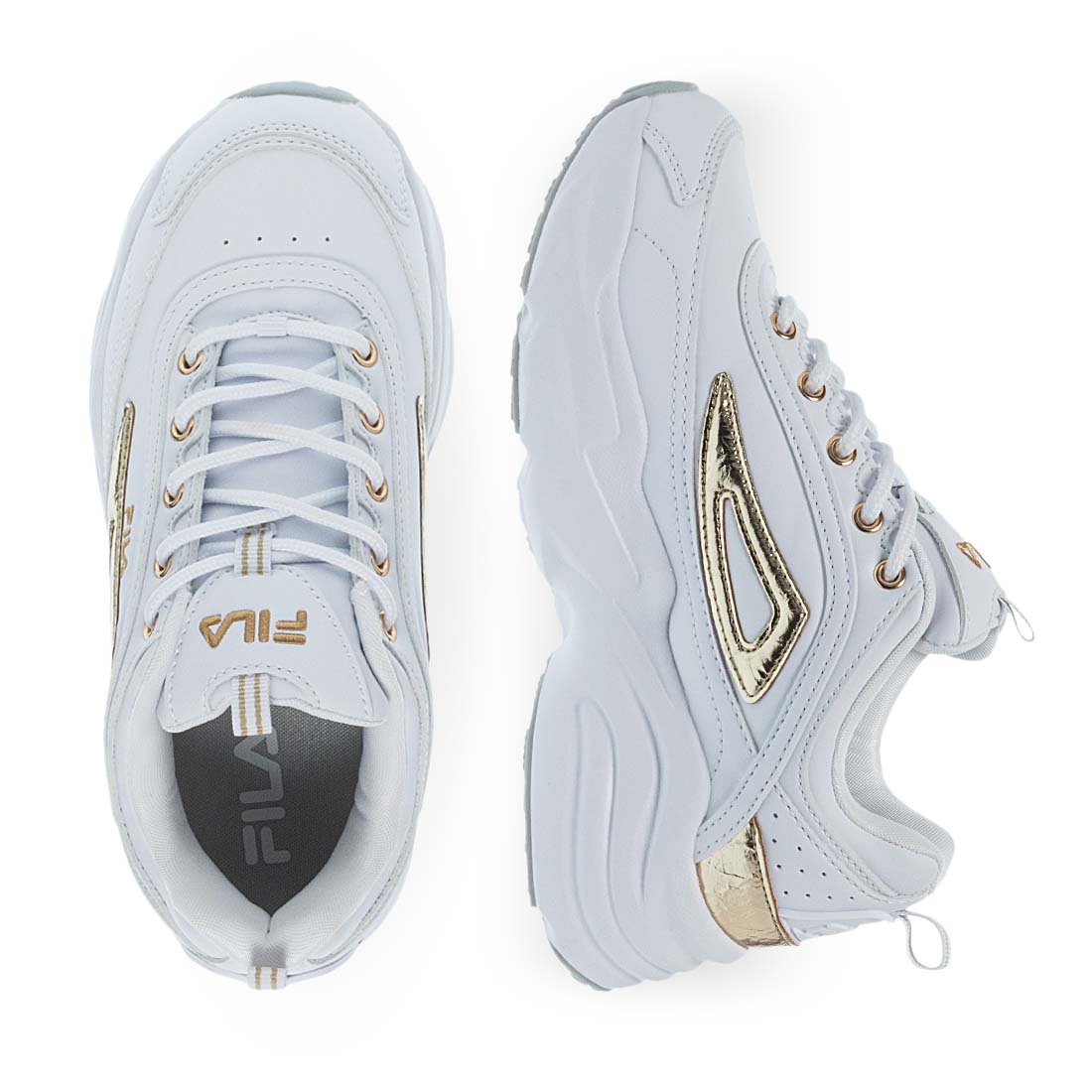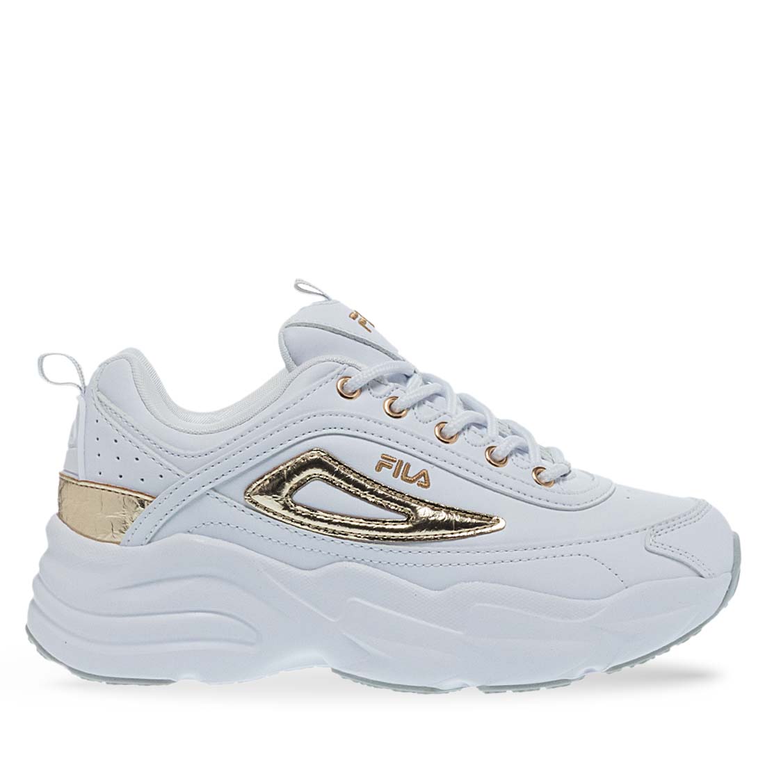 Γυναικεία αθλητικά παπούτσια από το brand Fila. Γυναικεία αθλητικά παπούτσια FILA σε λευκό με χρυσές λεπτομέρειες. Trendy και άνετα για sporty chic στυλ.