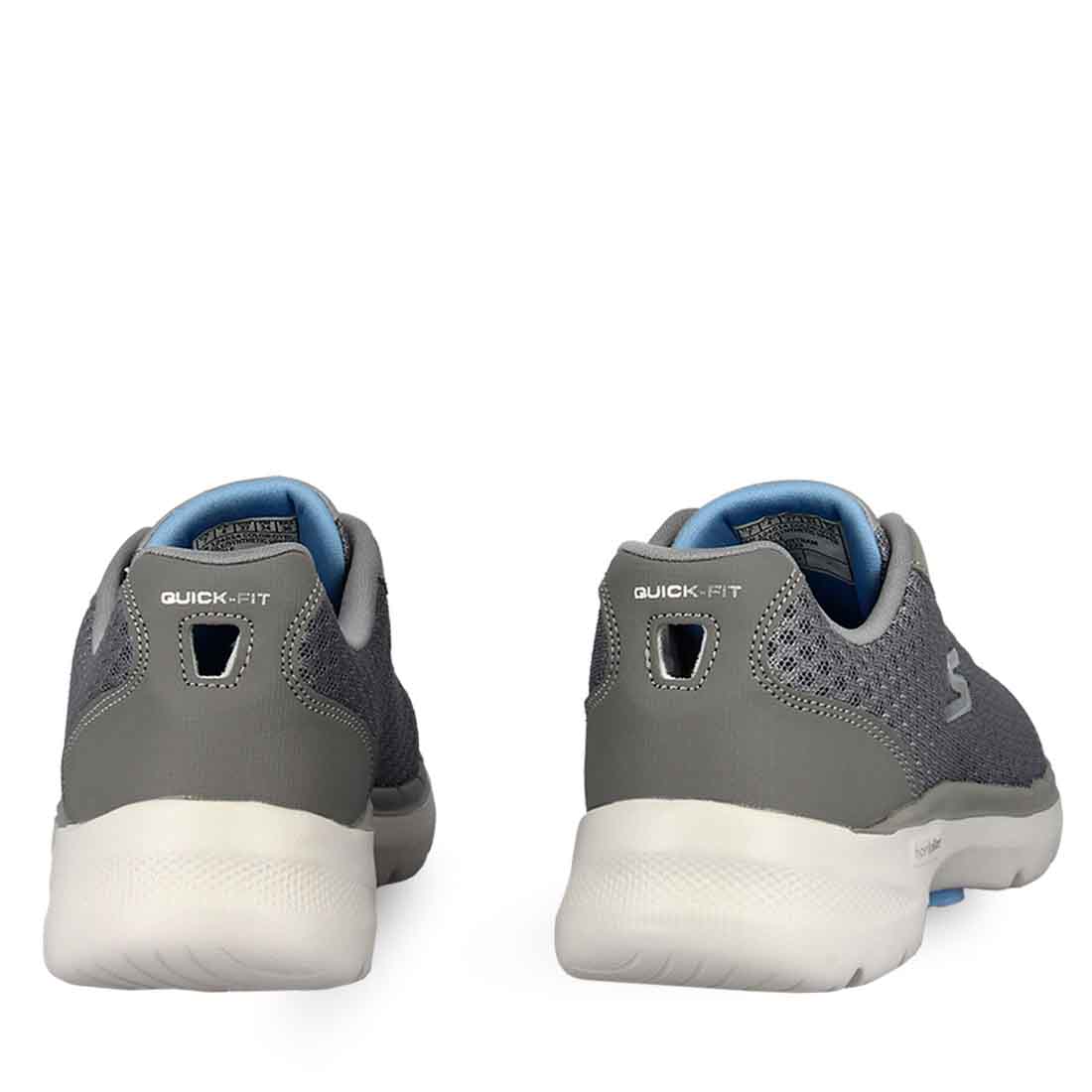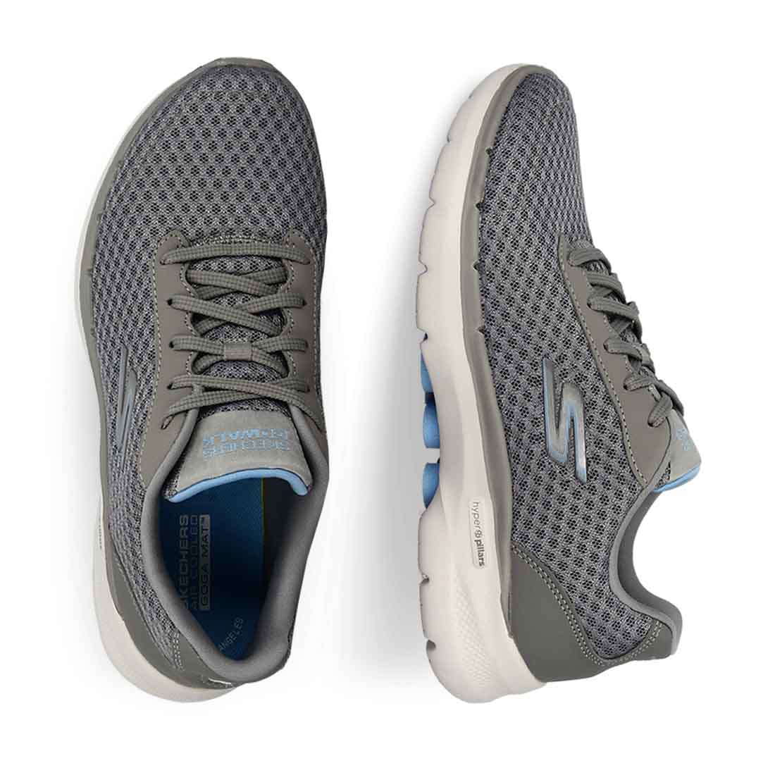 Γυναικεία υποδήματα Skechers GOwalk 6™ Iconic Vision σε γκρι χρώμα. Δένουν με κορδόνια και διαθέτει διχτυωτό ύφασμα στο επάνω μέρος. Αναπαυτικός πάτος Goga Mat™, σόλα απορρόφησης κραδασμών ULTRA GO® και τεχνολογία Hyper Pillar Technology™ για πρόσθετη υποστήριξη.