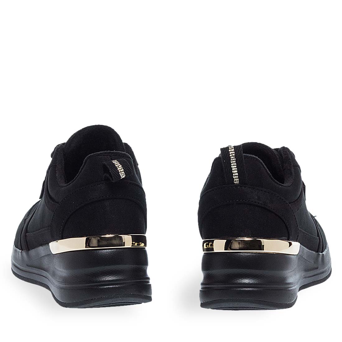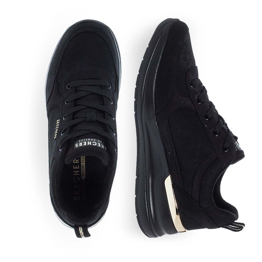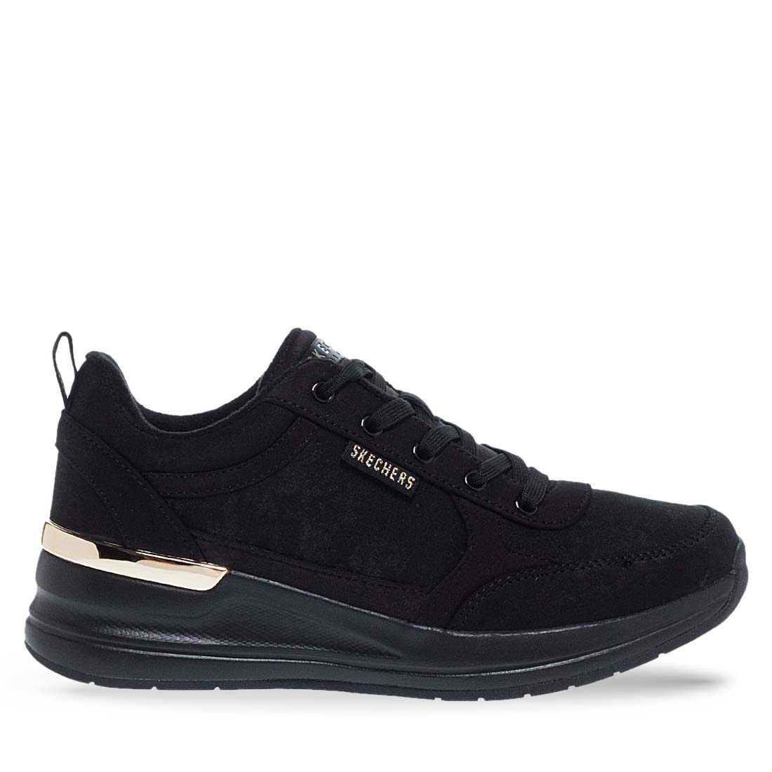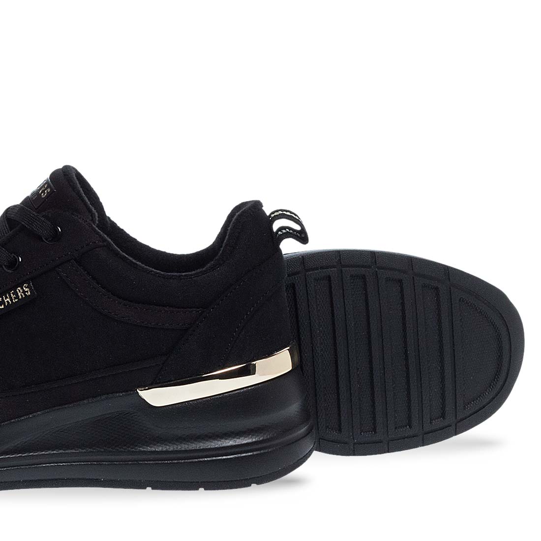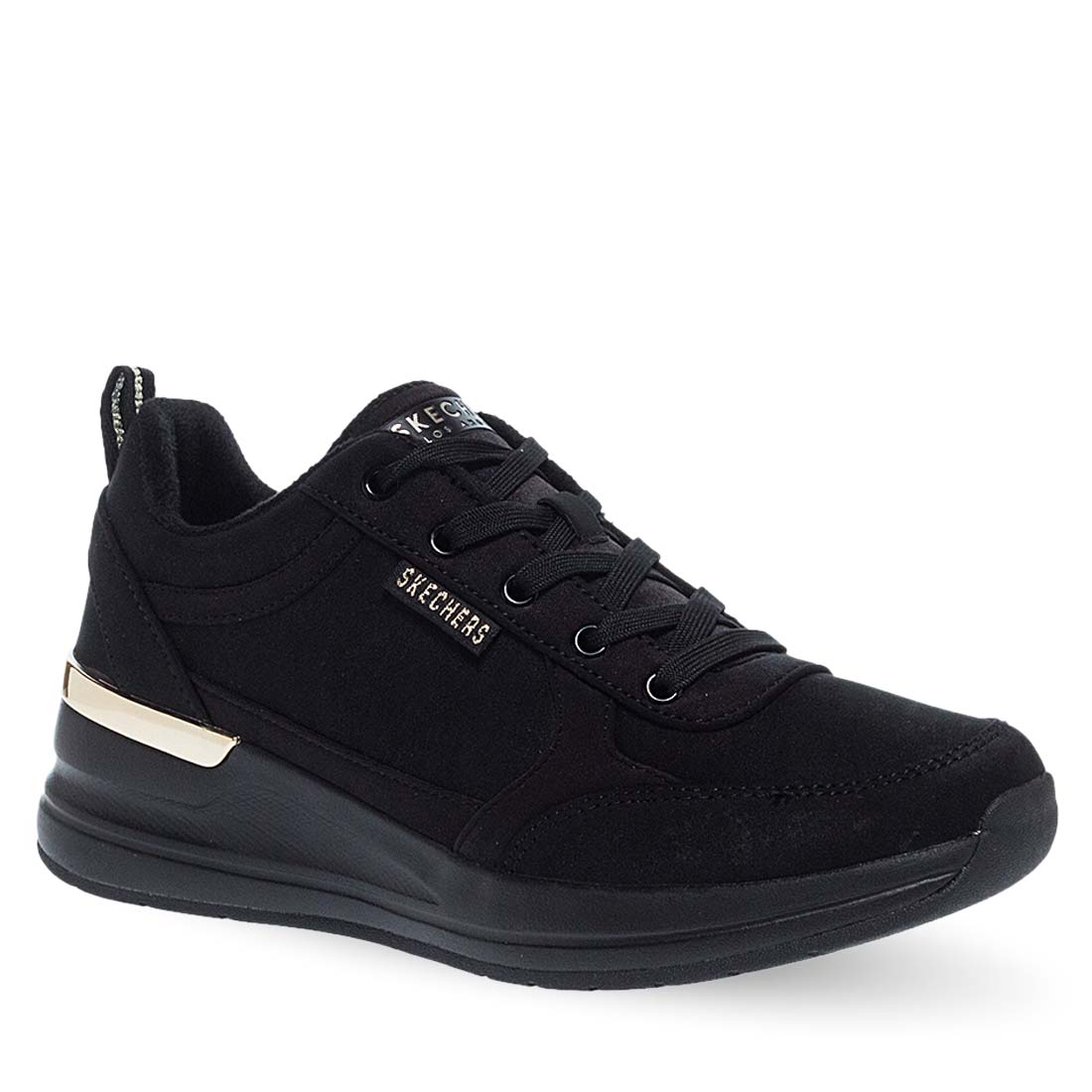 Μοντέρνα αθλητικά παπούτσια Skechers με suede υφή εξωτερικά. Διαθέτουν μοντέρνο σχεδιασμό, εξωτερικές ραφές και θηλιά στο πίσω μέρος. Με χρυσή λεπτομέρεια στο πίσω μέρος και χαμηλό τακούνι πλατφόρμα. Ανθεκτικά αθλητικά, ιδανικά για ένα χαλαρο sporty look.
