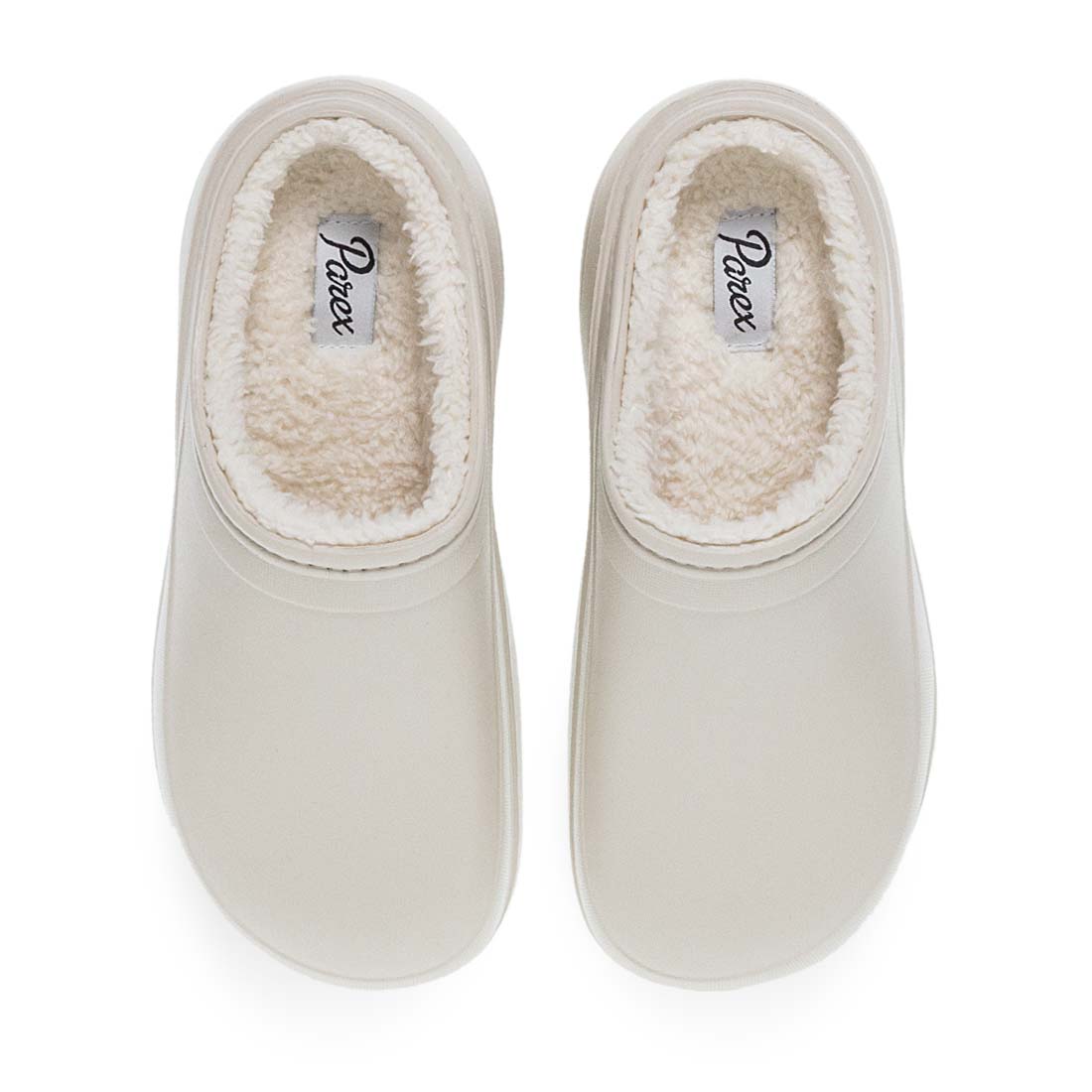 Γυναικεία clog Parex. Γυναικεία χειμερινά clog Parex σε μαύρο και πούρο χρώμα, με εσωτερική επένδυση γούνας. Ζεστά, ελαφριά και αδιάβροχα.