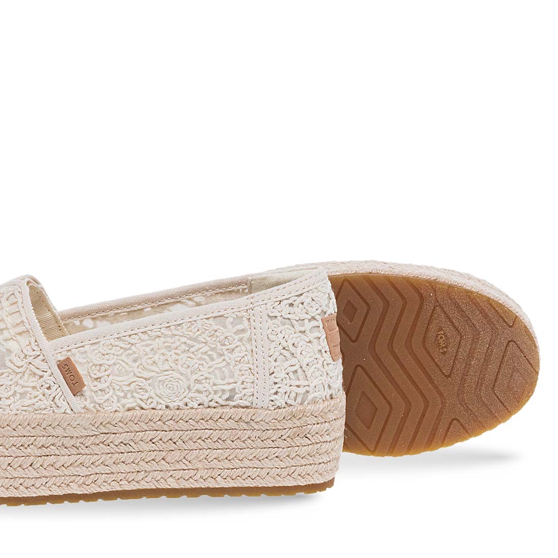 Γυναικείες εσπαντρίγιες Toms που θα απογειώσουν το outfit σας σε οποιαδήποτε στιγμή της ημέρας. Είναι σχεδιασμένες από διάτρητο ύφασμα Ο εσωτερικός πάτος είναι πολύ μαλακός και ειδικά διαμορφωμένος να απορροφά τους κραδασμούς σας. Eπώνυμες εσπαντρίγιες με σχοινί στη σόλα.