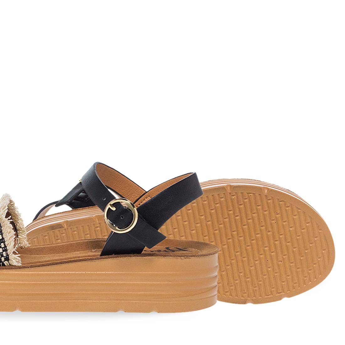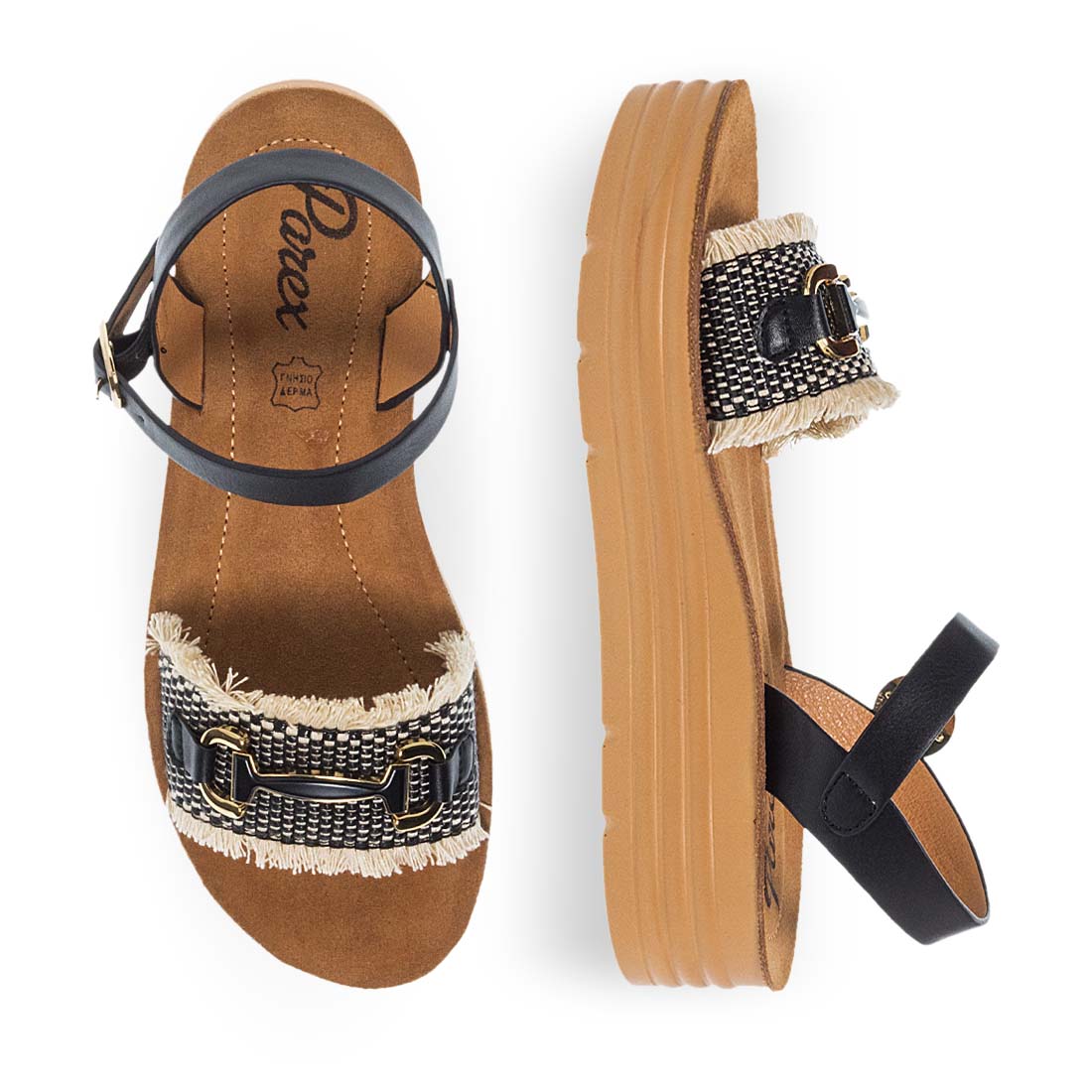 Γυναικεία flatforms Parex. Αναβάθμισε κάθε εμφανισή σου με αυτά τα γυναικεία flatform από την Parex. Διαθέσιμa σε μαύρο και ταμπά χρώμα από συνθετικό δέρμα εξαιρετικής ποιότητας. Σταθερή φάσα στο πάνω μέρος από ψάθα με διακοσμητικό μεταλλικό στοιχεία και λουράκι που κλείνει με αγκράφα στον αστράγαλο στο πλάι. Διαθέτουν μαλακό δερμάτινο πέλμα και σταθερή σόλα πλατφόρμα. Αυτά τα γυναικεία flatforms δεν θα θέλετε να τα αποχωριστείτε αυτό το καλοκαίρι.