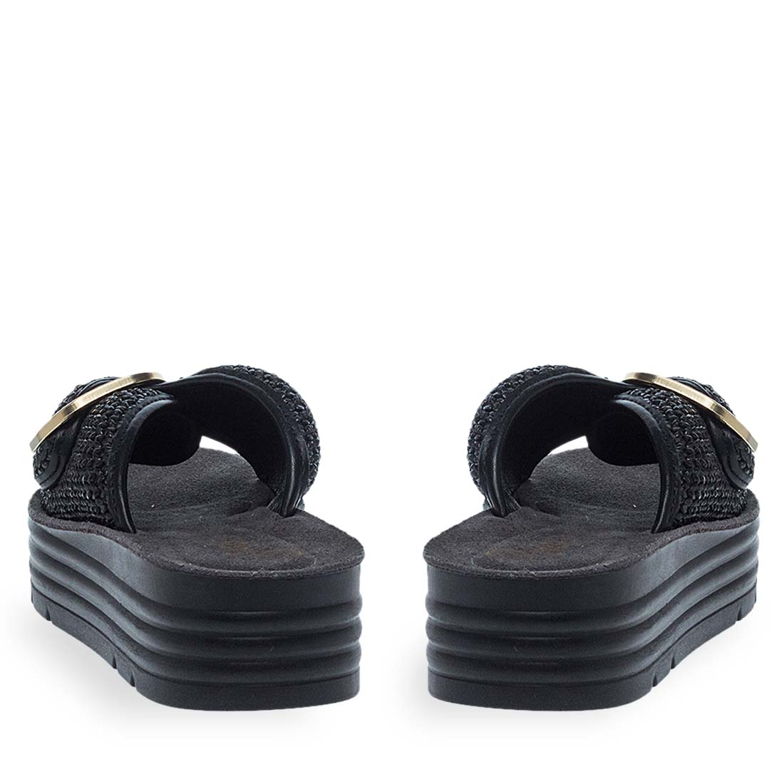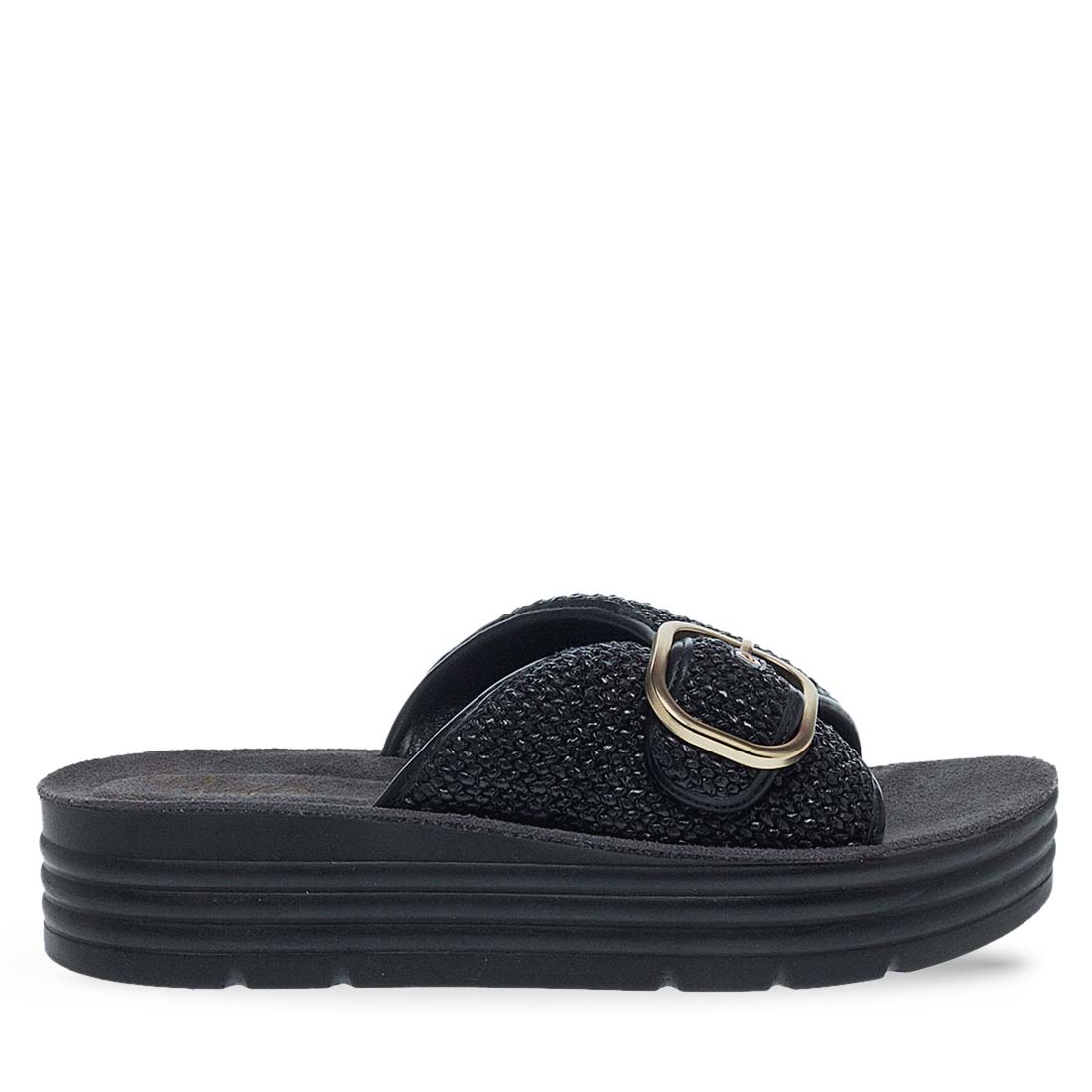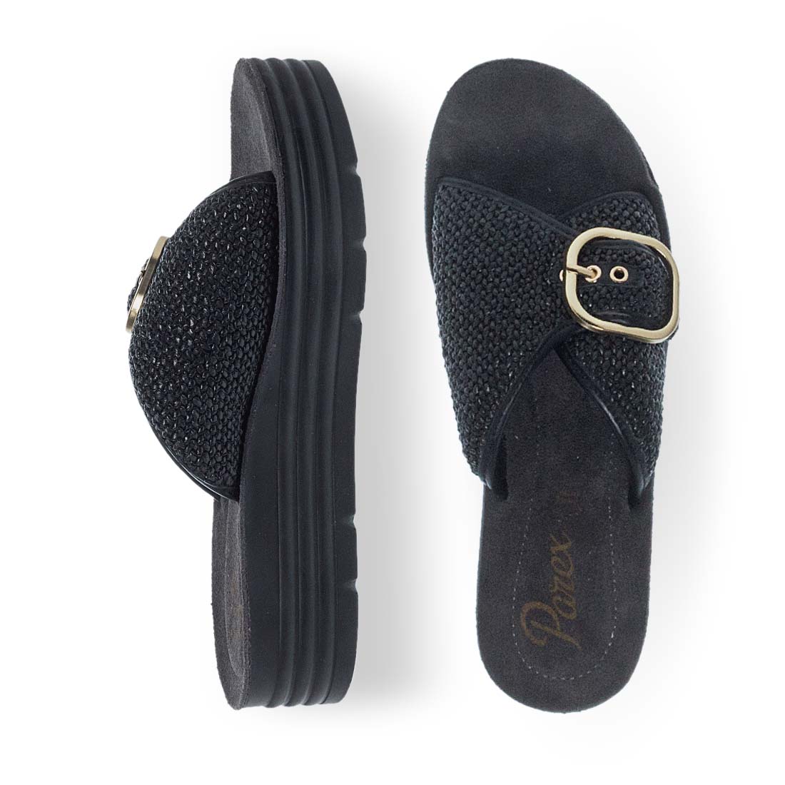 Υπέροχα γυναικεία flatform για δυναμικές καλοκαιρινές εμφανίσεις. Μοντέρνος σχεδιασμός με ψάθινο σχέδιο. Φαρδιά λοξή φάσα στο πάνω μέρος με μεταλλική αγκράφα ώστε να εφαρμόζει τέλεια σε κάθε τύπο ποδιού. Αναπαυτικός δερμάτινος πάτος. Γυναικεία καλοκαιρινά παπούτσια Parex που δεν πρεπει να λείπουν από τη γκανταρόμπα σας.
