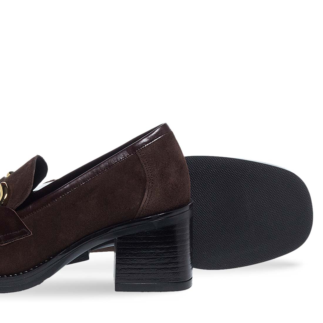 Γυναικείες γόβες Maison Minrelle, ιδανικές για να κλέψουν τις εντυπώσεις σε κάθε περίσταση. Διαθέουν πολύ μαλακό εσωτερικό πάτο και block τακούνι μεσαίου μεγέθους. Γυναικείες γόβες που διαθέτουν μεταλλικά στοιχεία στο πάνω μέρος και συνδυασμό ματ και suede δέρματος.