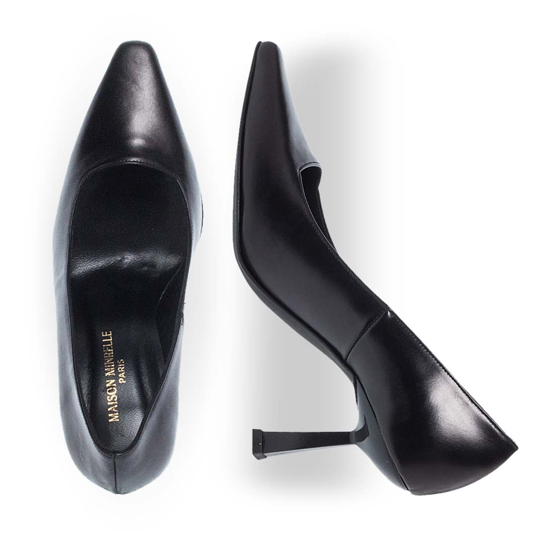 Μυτερές δερμάτινες γόβες από τη νέα συλλογή Maison Minrelle. Διαθέτουν ψηλό λεπτό τακούνι, άκρως εντυπωσιακό. Κέρδιστε πόντους και κλέψτε τις εντυπώσεις με αυτές τις διαχρονικές και κομψές γυναικείες γόβες. Μαλακός εσωτερικός πάτος.