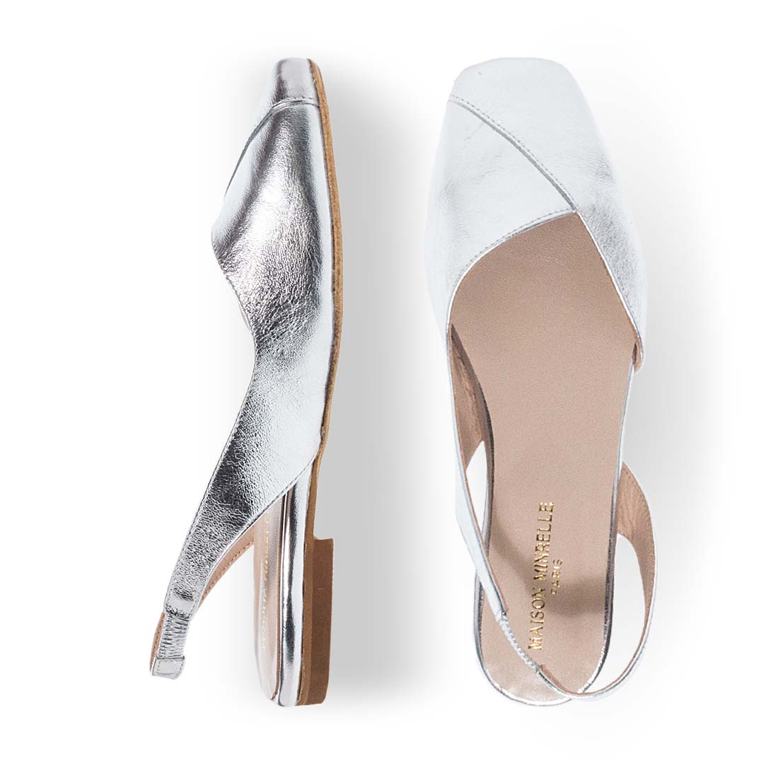 Χαμηλές γόβες Maison Minrelle σε στιλ slingback για κομψά βήματα. Διαθέτουν τετραγωνισμένη μύτη στο μπροστά μέρος. Πολύ μαλακό δερμάτινο πέλμα εσωτερικά για να προστατεύει τα πόδια σας. Διαθέσιμα σε μεταλλικά χρώματα ώστε να επιλέξετε αυτό που ταιριάζει με την γκαρνταρόμπα σας. Υπέροχες γυναικείες γόβες για να φορεθούν από το πρωι ως το βράδυ.