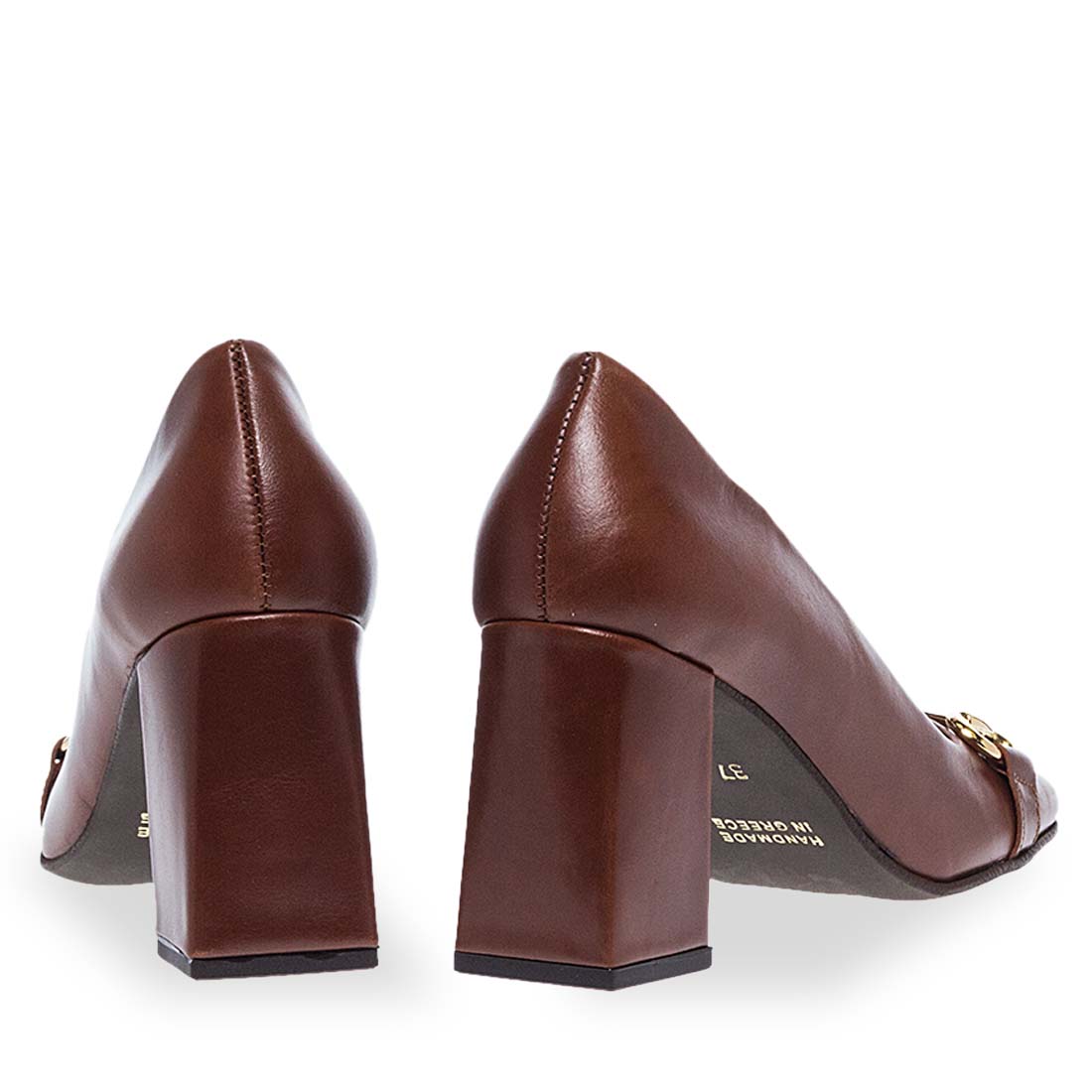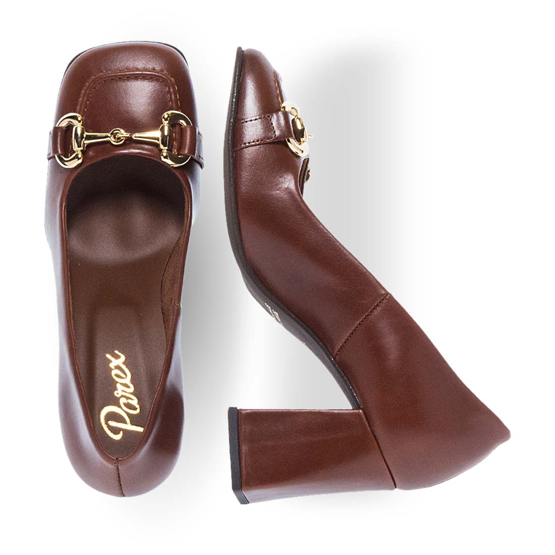 Γυναικείες γόβες Parex. Ξεχώρισε στο καθημερινό σου στιλ με αυτές τις γυναικείες γόβες με την υπογραφή της Parex. Διαθέτουν μεταλλική αγκράφα στο μπροστινό μέρος. Σχεδιασμένη σε θηλυκή γραμμή,διαθέσιμες σε μαύρο,ταμπά και κονιάκ χρώμα ώστε να επιλέξετε αυτό που ταιριάζει με την γκαρνταρόμπα σας. Δερμάτινο αναπαυτικό πάτημα και ψηλό block τακούνι. Συνδίασε αυτές τις γυναικείες γόβες Parex με midi φούστα ή crop παντελόνια για τις πιο εντυπωσιακές office εμφανίσεις.