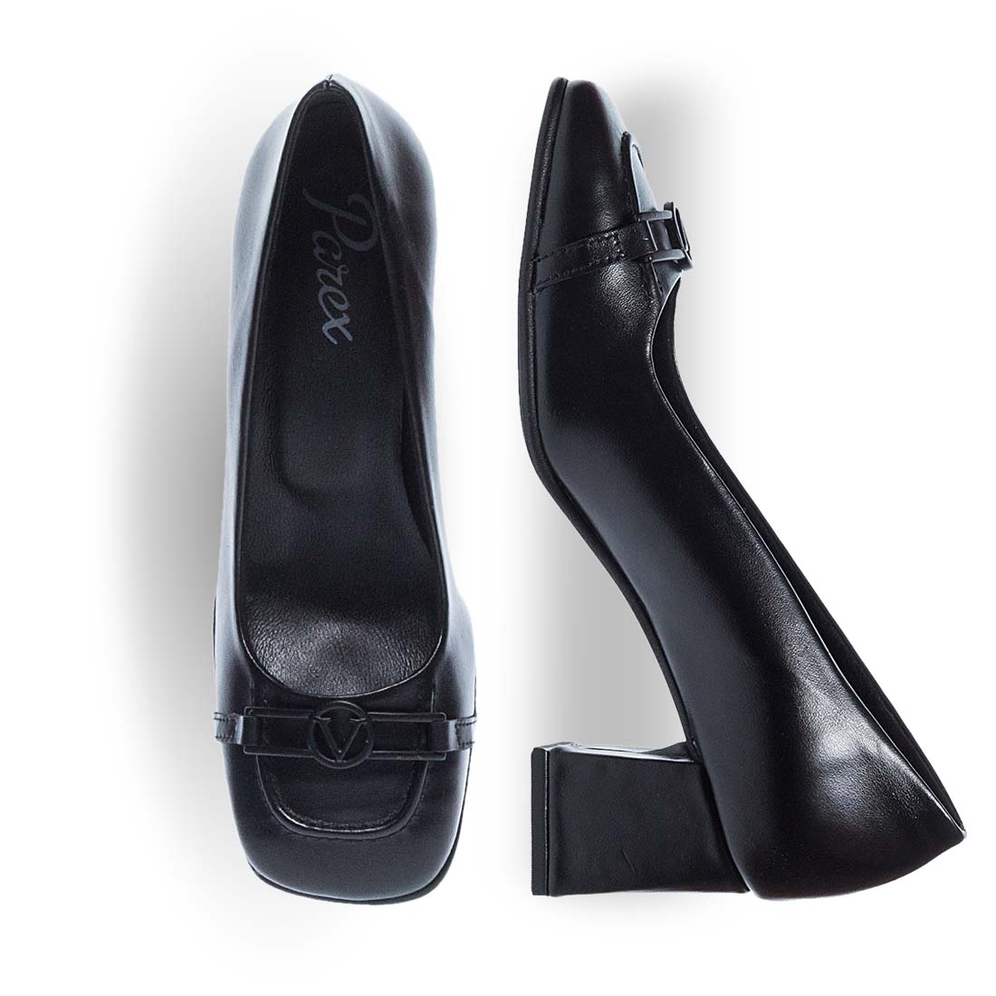 Γυναικείες γόβες Parex. Για άνετες και στιλάτες εμφανίσεις όλη την ημέρα επιλέξετε αυτό το μοντέρνο και ταυτόχρονα διαχρονικό σχέδιο γυναικείες γόβες από την Parex. Διαθέτει χαμηλό block τακούνι και αναπαυτικό δερμάτινο πάτο. Μεταλλική λεπτομέρεια στο πάνω μέρος που ξεχωρίζει. Διαθέσιμες σε μαύρο,ταμπά και κονιάκ χρώμα που θα ολοκληρώσουν το office look σας.