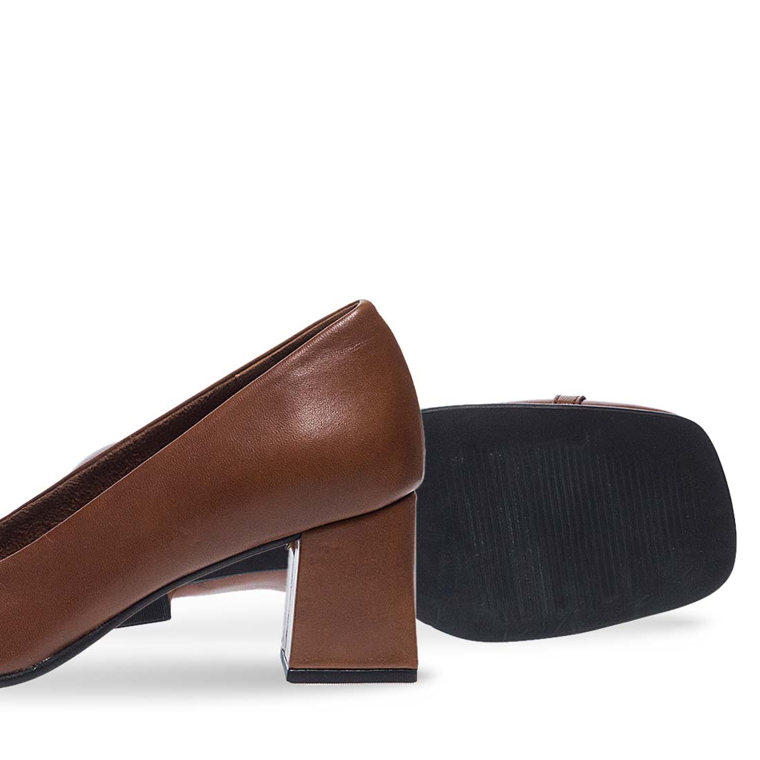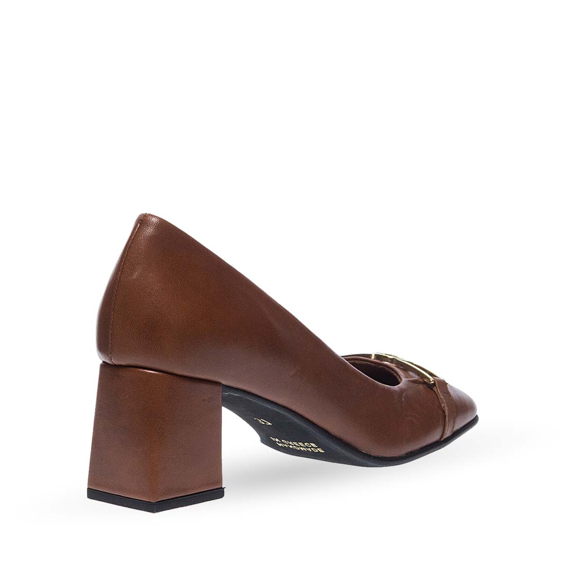 Γυναικείες γόβες Parex. Για άνετες και στιλάτες εμφανίσεις όλη την ημέρα επιλέξετε αυτό το μοντέρνο και ταυτόχρονα διαχρονικό σχέδιο γυναικείες γόβες από την Parex. Διαθέτει χαμηλό block τακούνι και αναπαυτικό δερμάτινο πάτο. Μεταλλική λεπτομέρεια στο πάνω μέρος που ξεχωρίζει. Διαθέσιμες σε μαύρο,ταμπά και κονιάκ χρώμα που θα ολοκληρώσουν το office look σας.